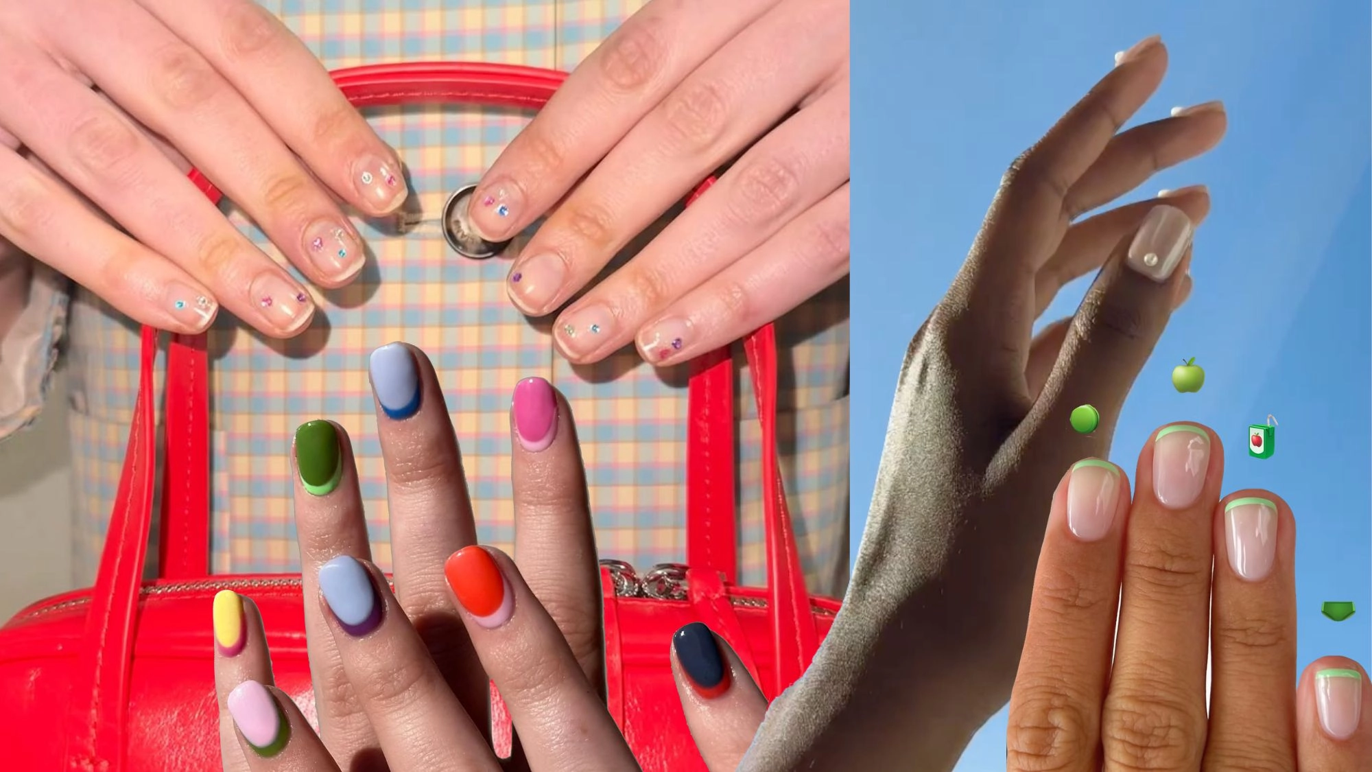 A micro-French manicure is the chicest way to incorporate a pop of color. "These designs work best on short-length, trim nails, leaving little to no free edge," Lim explains. If you want to jazz things up, Lim recommends painting each tip a different shade for a Skittles effect.