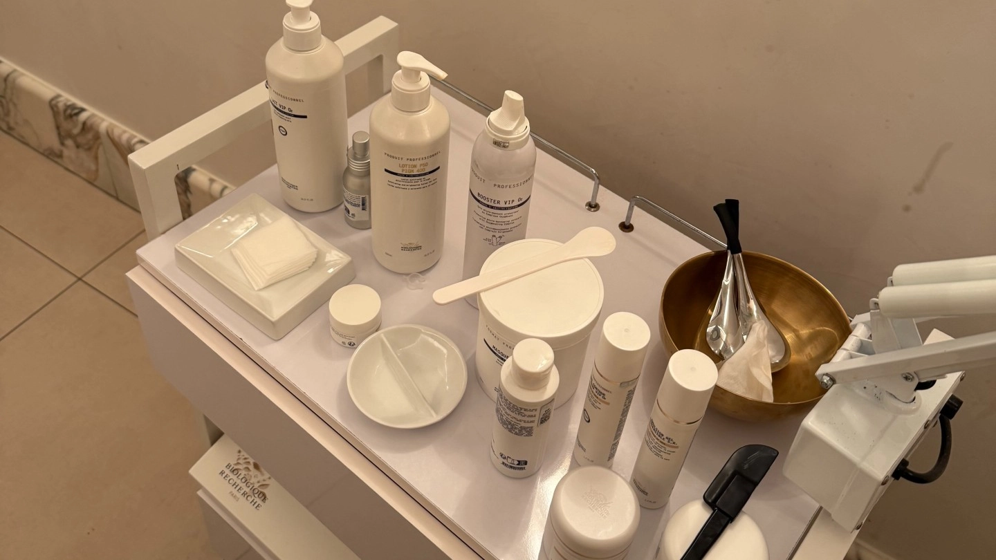 I've been using the range for 36 days, and as I mentioned up top, people can't stop commenting on my skin's noticeable glow. I haven't worn a full face of makeup in weeks, yet my cheekbones gleam in the light as if I tapped on a creamy highlighter. I often find myself dashing out the door without a stitch of glam, save for a bold lip moment, which you can see in the photo above. Megawatt skin, zero concealer, and a punchy red lip—very French, and thus very aligned with Biologique Recherche.