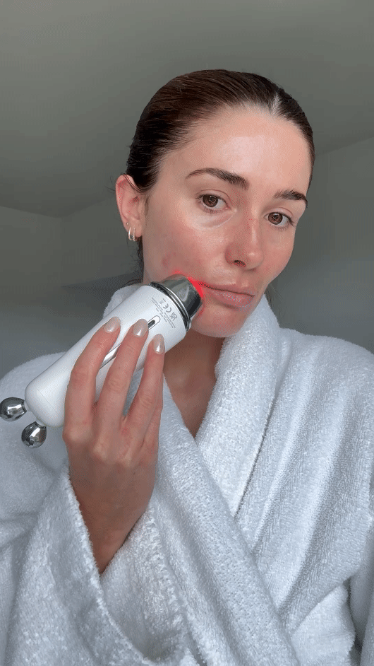 The first thing to note is that for it to work, a water-based product has to be applied to the skin to allow for the conductivity of the technologies—this could be something like a hyaluronic acid serum or moisturiser. "My top tip is to use a water-based product with a thicker consistency, as I find it’s much easier when treating the full face, as there's less need to reapply throughout," says Perry.