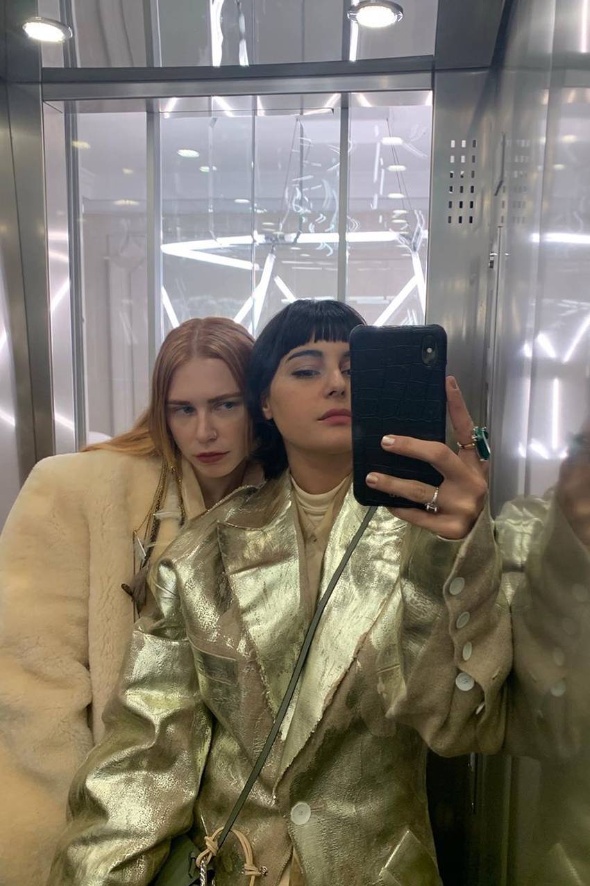 The classic tan color on Caroline Daur's jacket creates an appealing contrast with her fair skin.