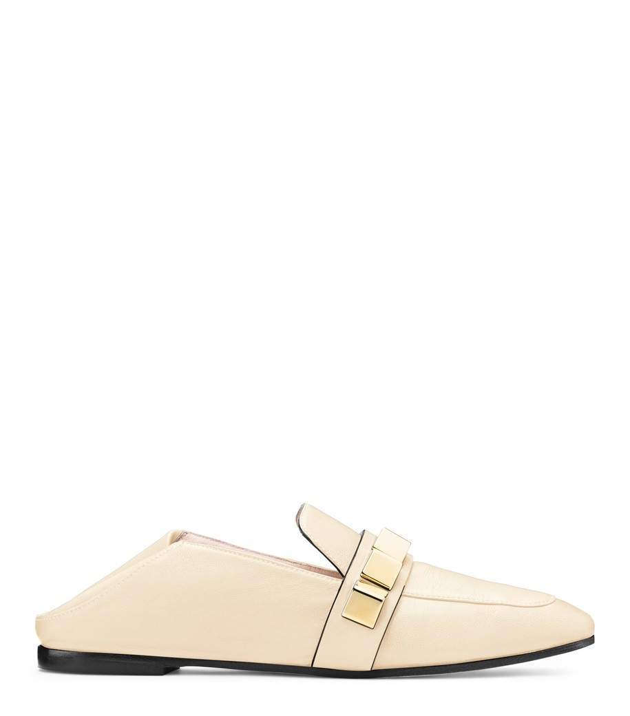 Lawrence stepped out this week in NYC with husband Cooke Maroney wearing an elegant late-fall outfit that was decidedly more Upper East Side than Lower East Side, consisting of a cream-colored leather coat, satin slip skirt, and top-handle printed leather bag. And with all of that she wore a pair of flat shoes that I think could easily be one of the first pairs of designer It shoes by the time 2020 soon rolls around: Loewe's Slip-On Loafers with a collapsible back.