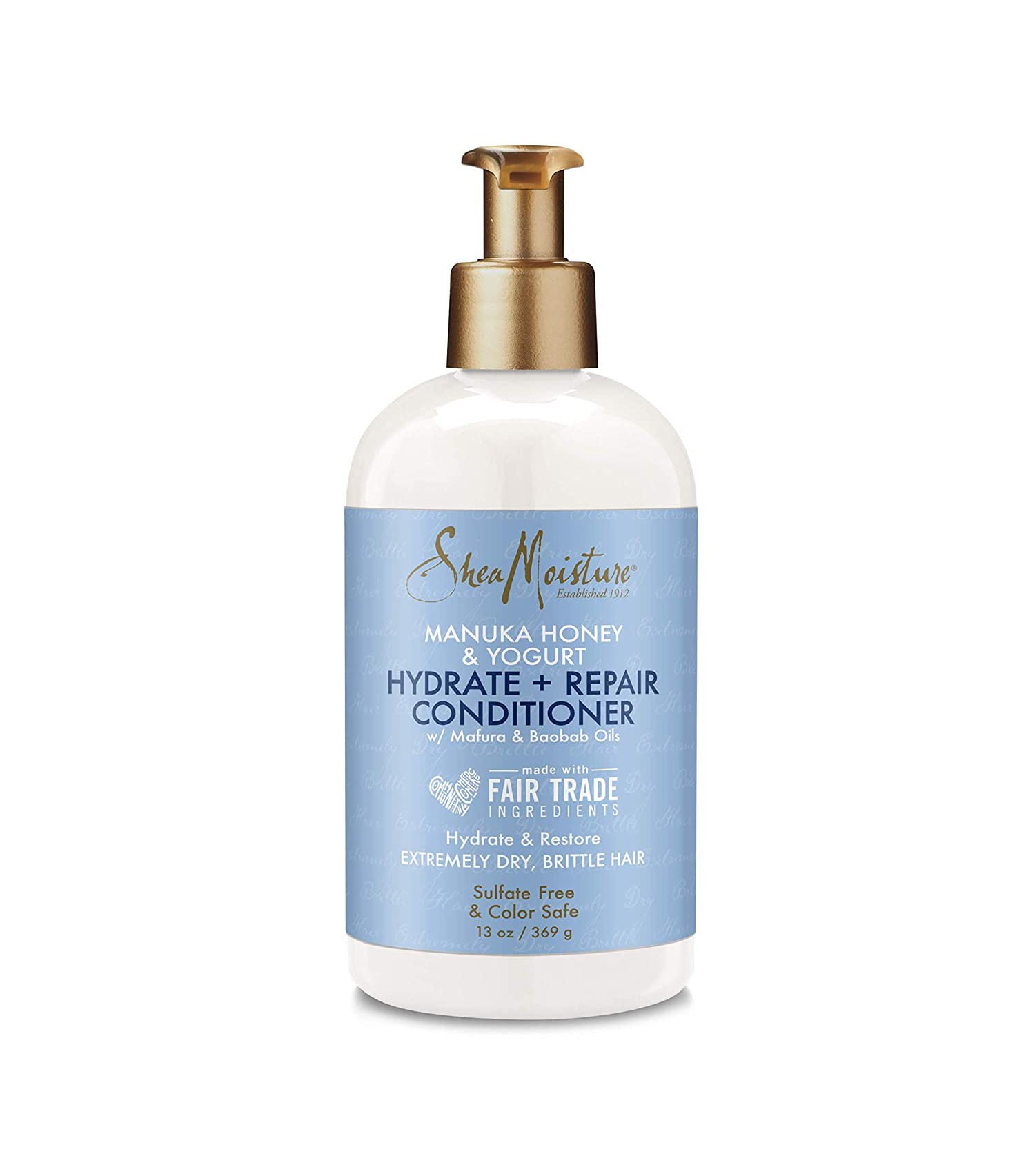 SheaMoisture's conditioner repairs damaged hair by smoothing dry cuticles and sealing split ends. You can even leave it on for three minutes or longer as a deep-conditioning treatment.