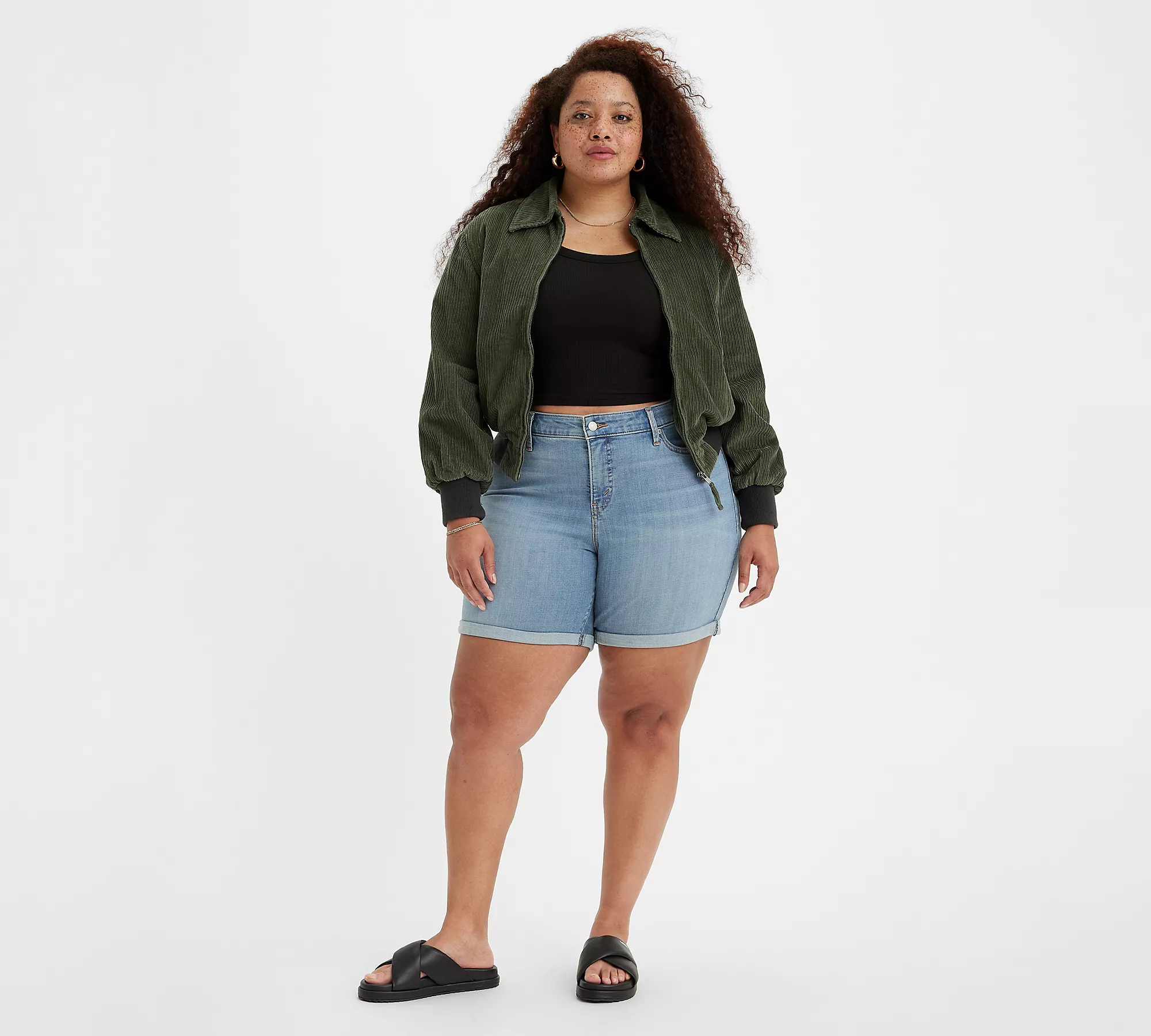 "I have found that knowing my inseam measurement helps me find shorts that fit just the way I want them to," Frenney-Wiggins shared with Who What Wear. "Because I have thick thighs, I generally look best in mid-length shorts. This style is universally flattering on most body types, especially curvier women."