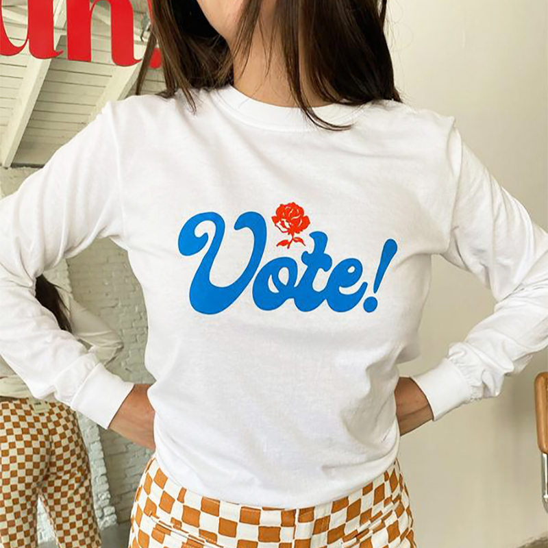 National Voter Registration Day was a couple of weeks ago, and with that came tons of new merchandise celebrating and encouraging the right to vote, and much of it happens to be very stylish. Feeling overwhelmed by all of the options out there, I did my part and compiled 35 of my favorite voting-themed fashion items, many of which donate a portion of proceeds or profits from sales to worthy causes.