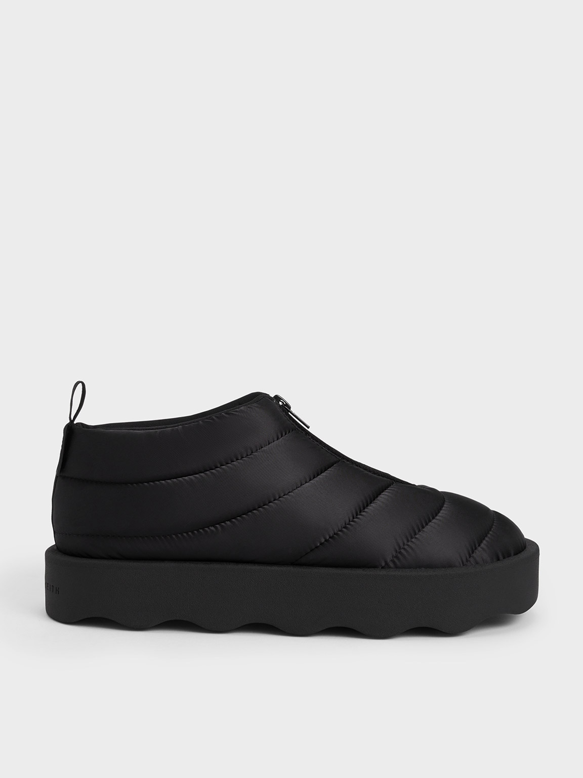 Black Puffy Nylon Panelled Zip-Up Sneakers
