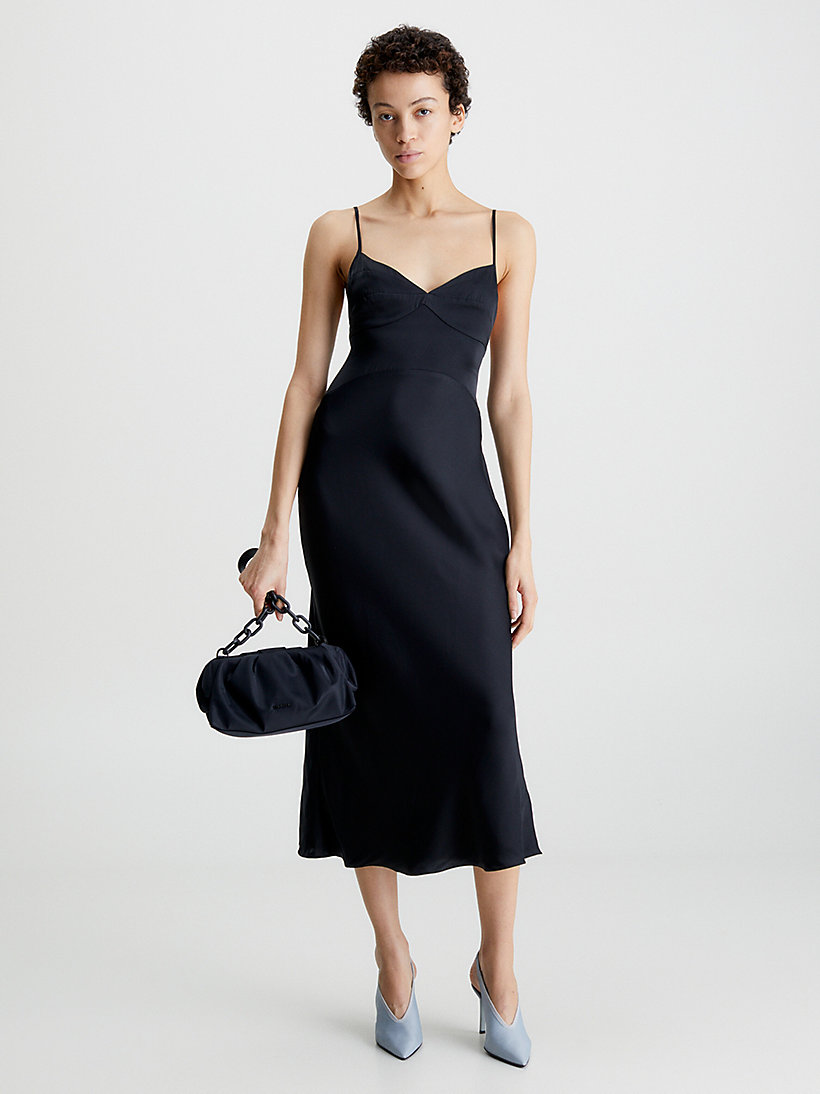 And now, the silhouette that Calvin Klein has mastered to perfection: the elegant slip dress. The last year might have given us flatforms, maxi skirts and cargo trousers, but my favourite thing about the '90s renaissance has to be the return of the slip: an easy, understated piece that has the best cost-per-wear of anything in your wardrobe. Dress it up with heels and a clutch, or keep it casual with trainers and a jacket. This black slip dress is so chic, so I automatically gravitated towards an evening spin. Chunky sandals are the easiest way to keep the look comfortable without having to compromise on style.