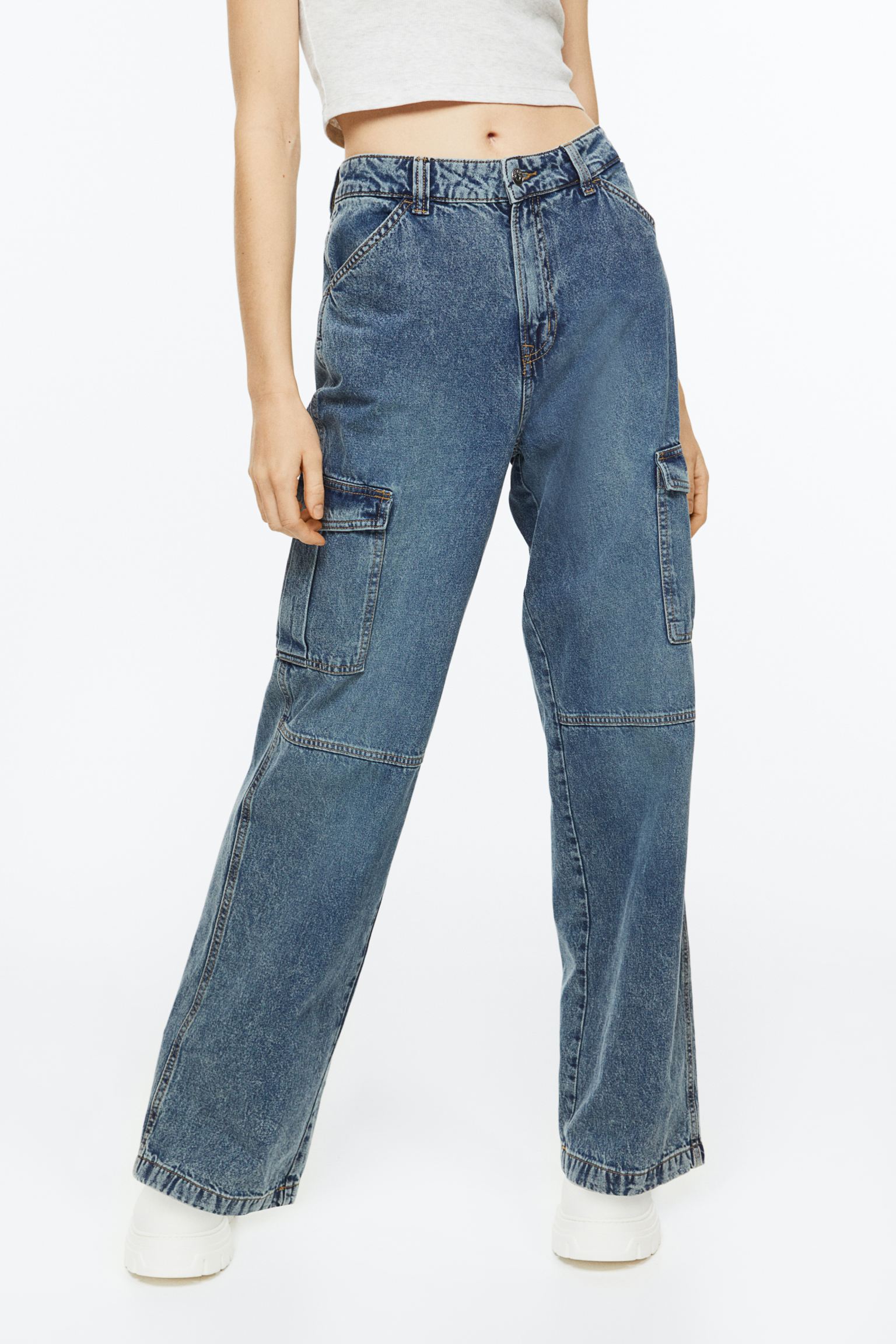 Bella Hadid brought her baggy jeans game to the next level with her cargo-style pair that boasts pockets on both sides.