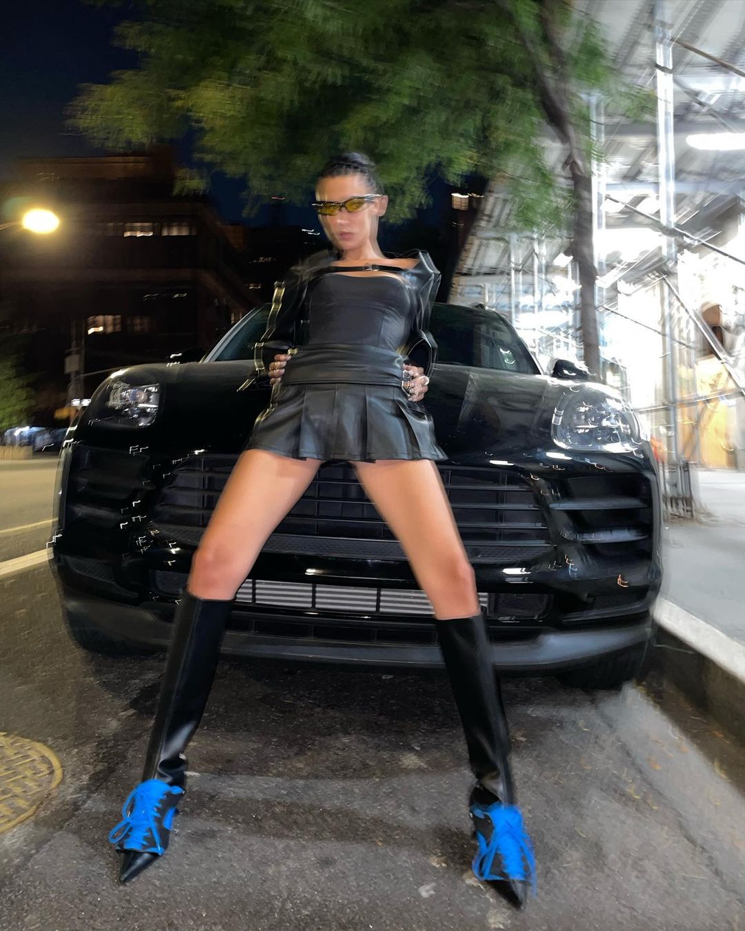 4. Bella Hadid in Sporty Pointed-Toe Boots