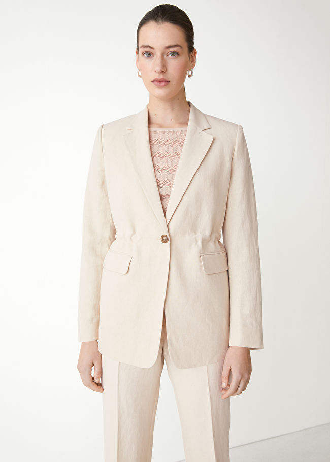 Suiting isn't going anywhere, but instead of the big, boxy blazers we've seen for several seasons, suits tailoring is going in a new direction for fall with nipped-in blazers that lend a bold hourglass shape.