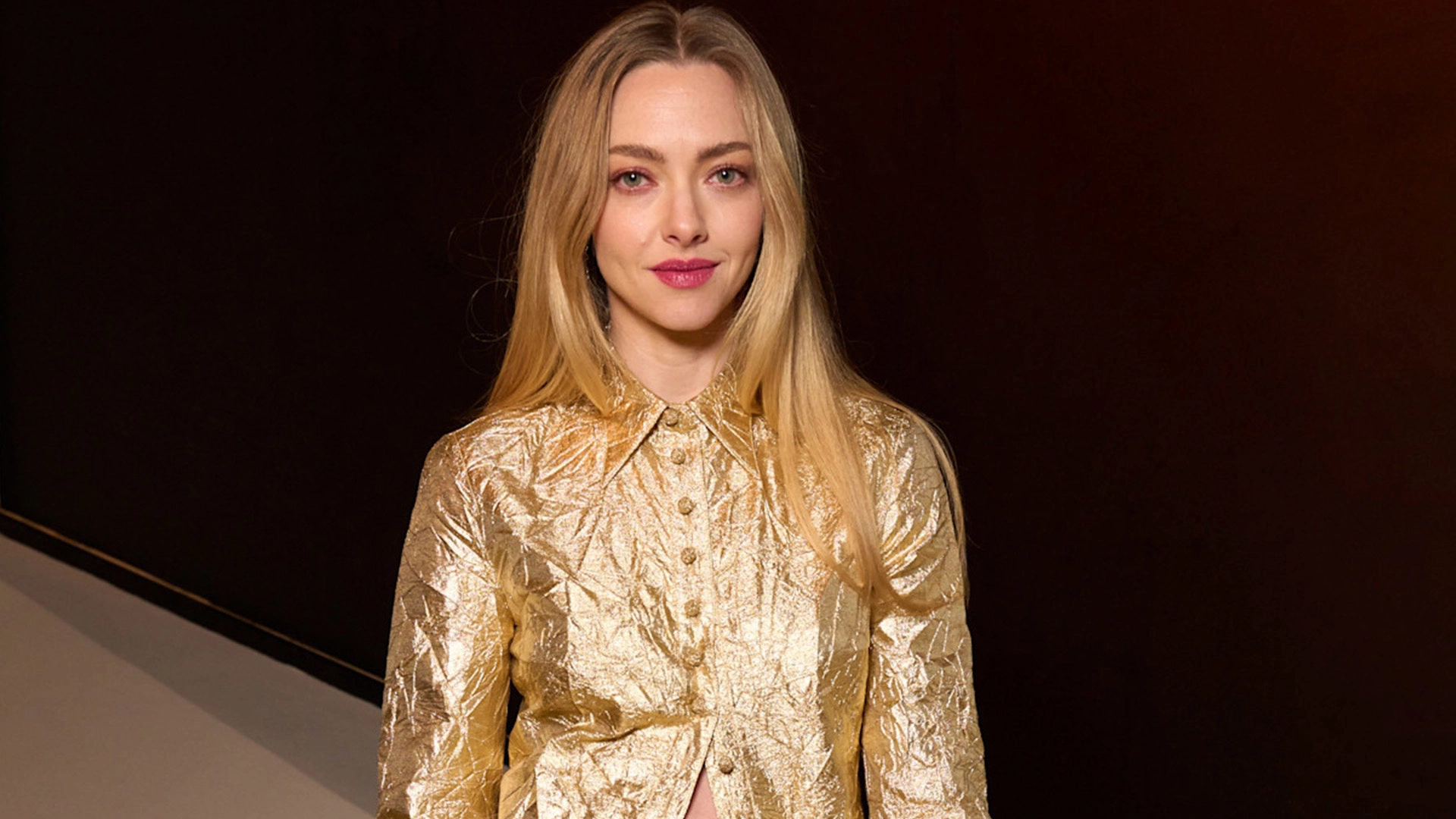 This season, Amanda Seyfried attended, wearing an impeccable outfit that revealed a belly button ring she's had since she was 17. The unexpected accessory peeked out from her unbuttoned crinkled gold button-down, which she paired with a frosty-blue skirt and the brand's best-selling Pierced heels in a snakeskin print.