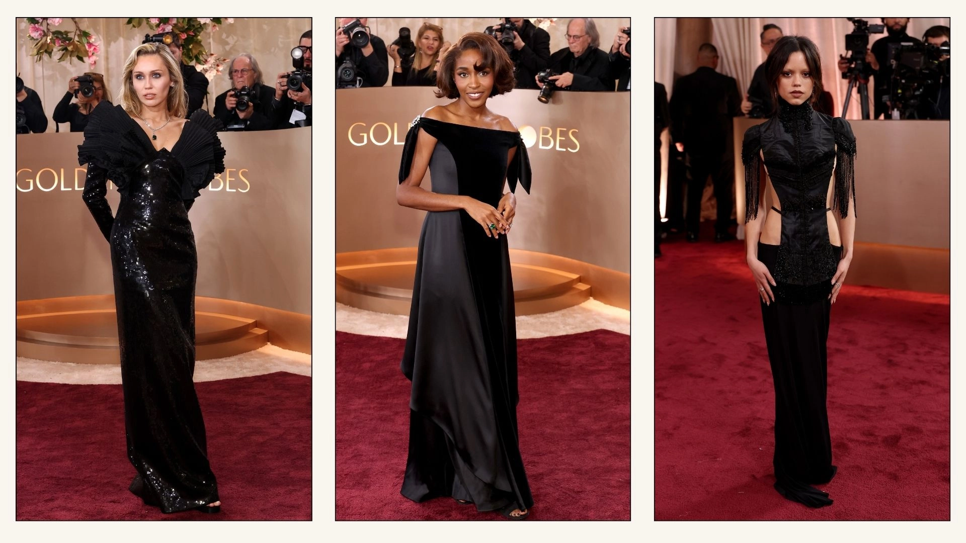 A conveyor belt of elegant black dresses, some stars leaned towards gothic silhouettes à la Miley Cyrus in her sparkle-adorned Saint Laurent gown or Jenna Ortega's Dilara Findikoglu's ensemble. Whilst others evoked classic Hollywood glamour through draping and texture.