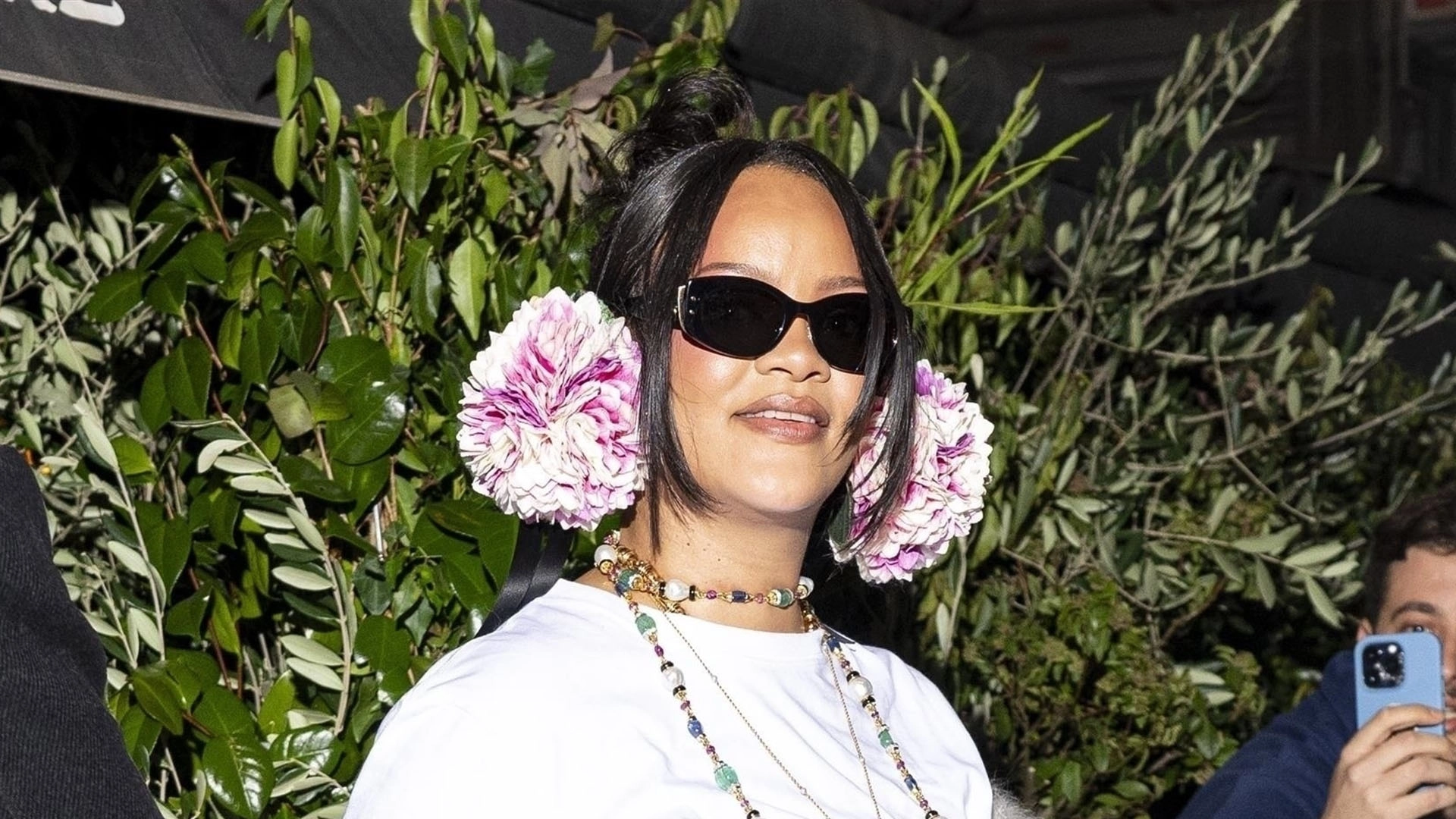 While on a night out in Paris, Rihanna wore a plain white T-shirt and blue baggy jeans with a slight cuff, which she styled with a pair of satin, pastel pink, pointed-toe heels. The sheen of the heels looks opulent and polished, making her otherwise plain outfit look far more chic and dressed up. Coincidentally, other celebrities such as Taylor Russell and Anya Taylor-Joy have also been spotted wearing the satin heel trend in Paris in recent days. So it’s safe to say it’s a fashion crowd favorite for 2026. To complete her look, Rih also accessorized with a fur scarf and fresh off the Dior runway pink earmuffs.