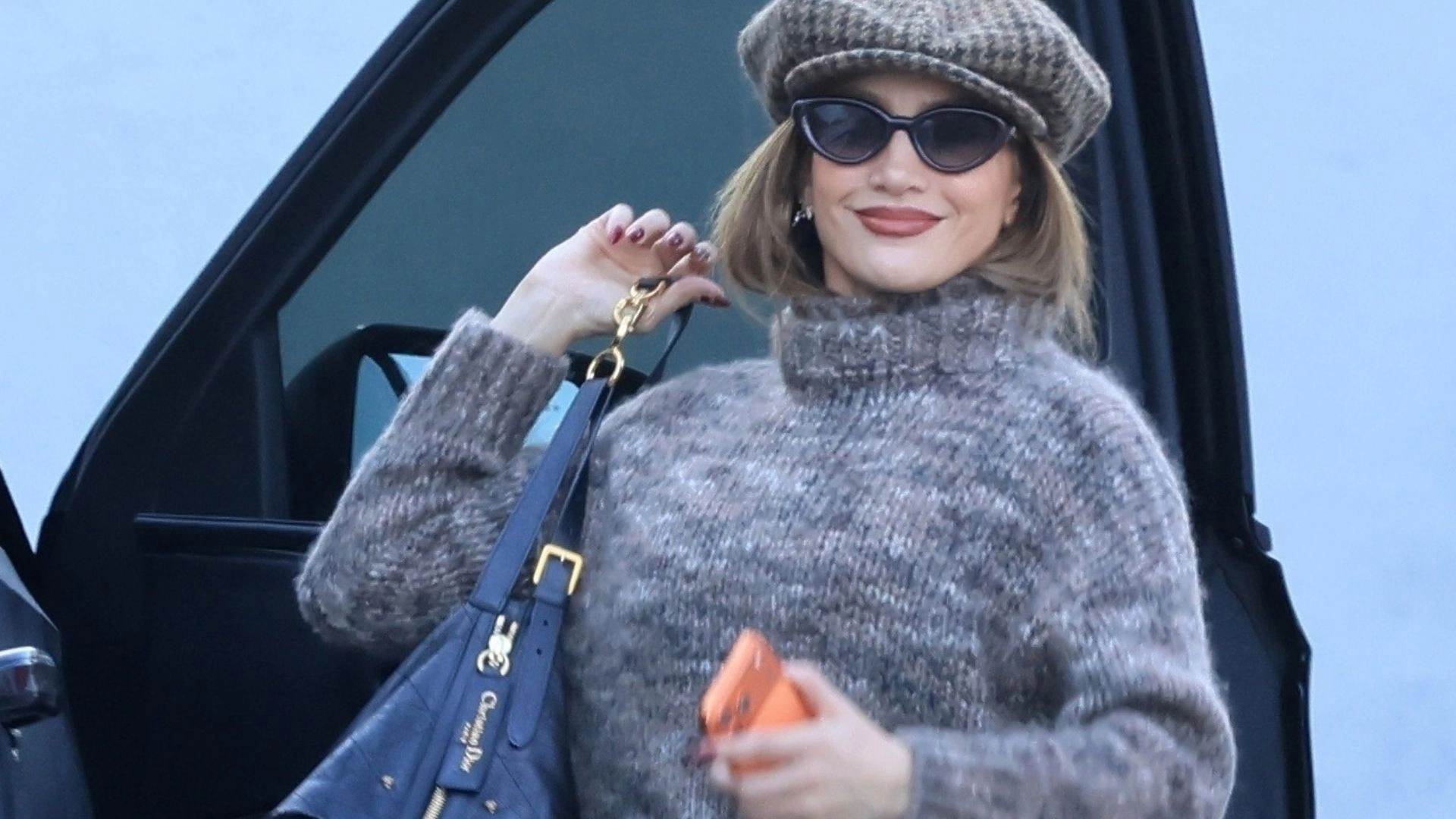 Lopez anchored her ensemble with a warm knit (as all of my favourite winter outfits do). The light grey marl set a cosy tone, which she topped off with a warm baker boy hat, adding both texture and a dimension to her casual winter look. My favourite part of the look, however? Her warm brown leggings. Instead of defaulting to the black pair most of us reach for—whilst it's an easy option, it can sometimes feel a touch flat against a slouchy knit—Lopez’s choice of brown was far more complimentary. The earthy tone brought warmth to the cool grey knit, creating a harmonious palette that felt considered rather than casual.