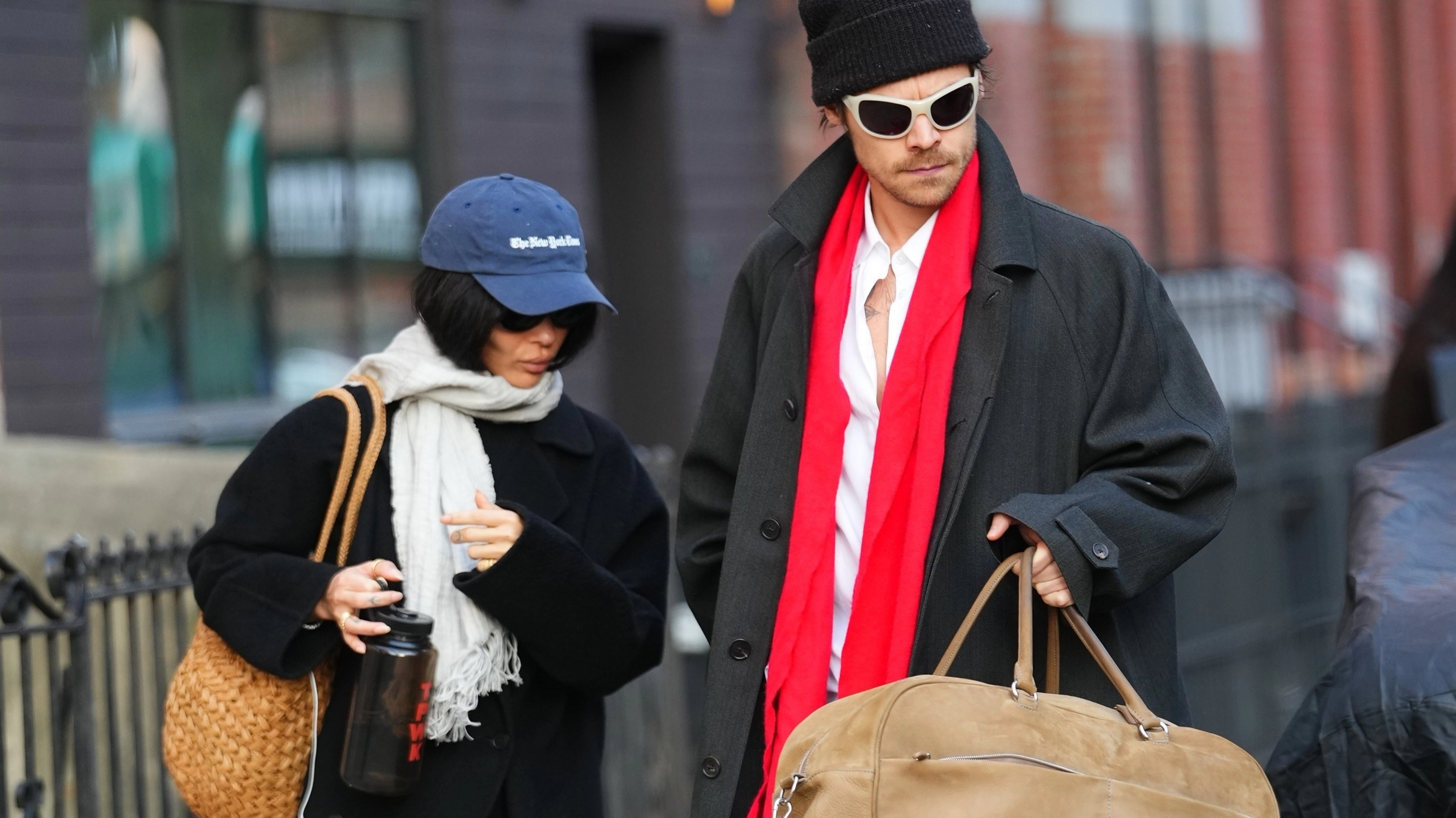 Jetting off to who knows where, Harry Styles and Zoë Kravitz emerged for another tour of the West Village before catching a flight. This noteworthy Brunello Cucinelli XL duffle absolutely stole the show in my opinion.