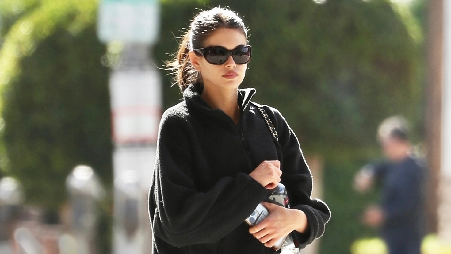 If you asked me to picture the quintessential L.A. It girl, I'd probably immediately picture Kaia Gerber in black leggings and sneakers. And lo and behold, that's exactly what she was photographed wearing in her hometown over the weekend. Gerber wore classic black leggings with her favorite Nike Metcon sneakers. And instead of a hoodie or puffer—the typical legging pairings for this time of year (yes, it even gets cold-ish in Southern California)—Gerber wore a fleece pullover. Specifically, it was a relaxed-fitting half-zip in black.