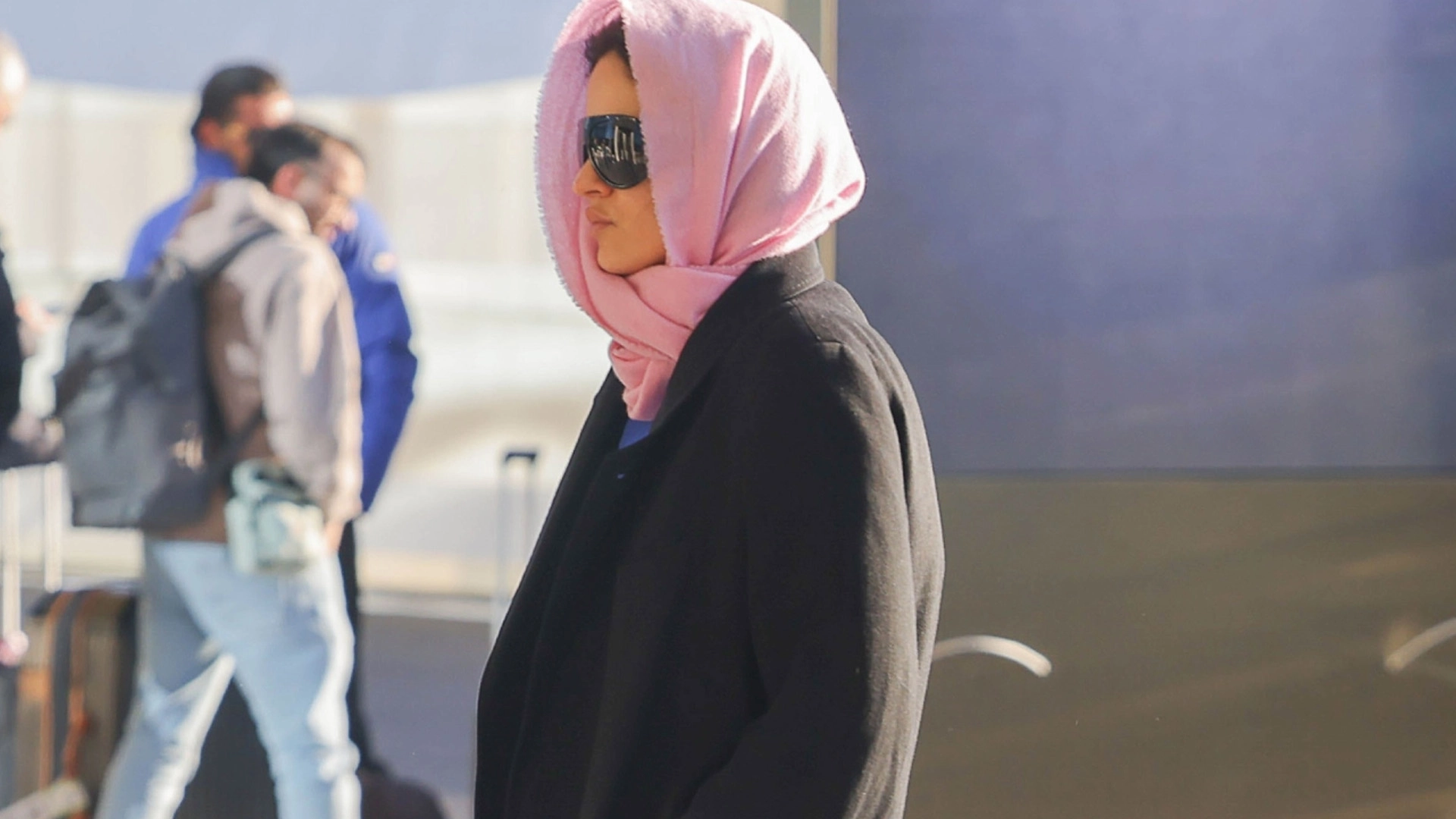 While out in Paris, Rosalia wore an all-black outfit with a pop of pink in the form of a scarf she wore wrapped around her head. The other elements of the look were simple: a long black coat, a pair of black trousers and surprisingly, a pair of black Ugg boots.