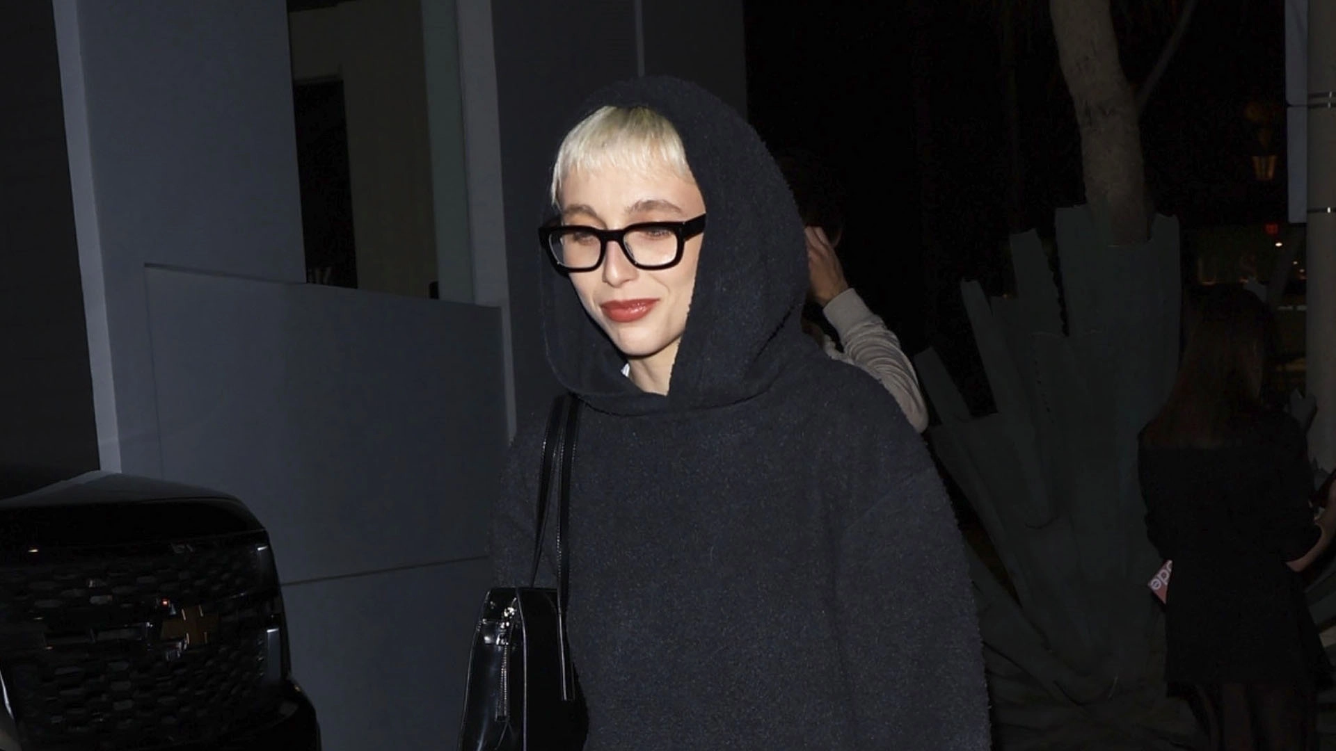 Chamberlain wore a dark gray knit hoodie and a midi skirt, accompanied by a simple and sleek black shoulder bag. Peeking out from her skirt was a pair of black leather slouch stiletto boots, adding a touch of elegance to her going-out look. It's a bit of a polarizing trend, but it’s clear the slouchy style is back for winter.