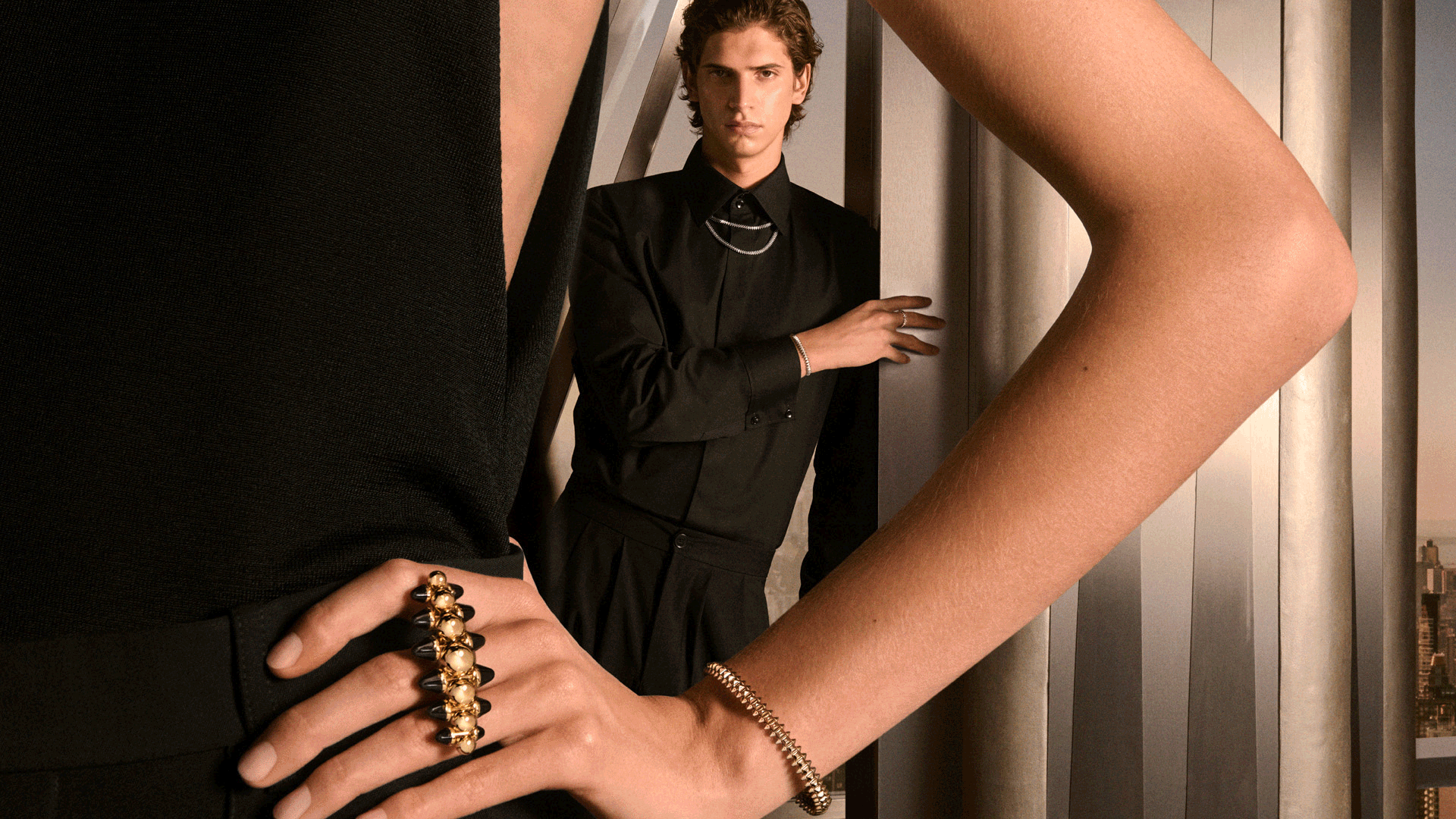 Clash de Cartier is all about contrast: soft studs, architectural curves, and silhouettes that balance strength and grace. Its latest additions further this concept, complementing the collection's geometry with new, fully flexible pieces that allow each component to move independently. This slight mobility even creates a vibration that produces an actual, subtle sound. The collection also expands on its signature sense of volume, introducing bolder, more dimensional silhouettes like double rows alongside adjustable designs. Plus, the collection spans a rich spectrum of color, with new yellow-gold iterations and accents of green- and red-tinted agate, pink chalcedony, and onyx. Hard stone beads are interspersed with rose-gold studs to emphasize both structure and movement. Each element is meticulously aligned and assembled through a combination of mechanical and hand-finished techniques, resulting in pieces that feel precise, yet unique.