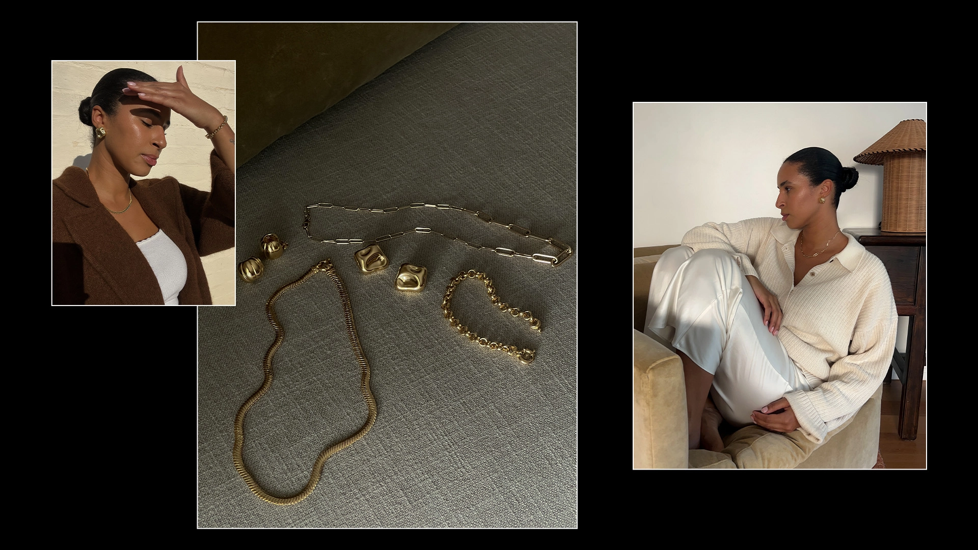 Of course, gifting isn't the only thing on Manning-Brose's mind. Holiday dressing is, too. "I will definitely be styling these pieces around the holidays! I can really see myself reaching for them for a fun friendsgiving and even for New Year's Eve," she said. Her approach to styling jewelry is effortless and relatable. "I absolutely love that these pieces are subtly bold without being overwhelming, and I really feel like they help level up any look. I personally love wearing these pieces with a cozy and slightly elevated look at home. Think elastic waistband, oversize sweater, and stunning gold jewelry—the perfect combo in my opinion."