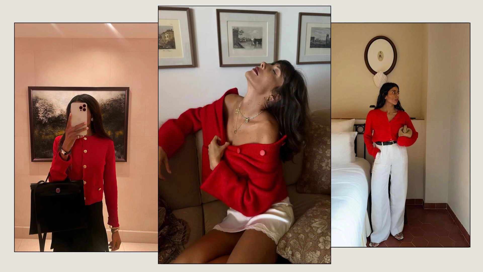 If there's one wardrobe item I've learnt not to underestimate, it's a red cardigan. I'm not usually one for policing personal style—if anything, I'm very much in the camp of wear what you love, ignore the noise—but even I, a committed neutral dresser who lives in black, grey, white and the occasional navy, have quietly succumbed to the pull of a scarlet knit. It crept in slowly at first: spotted on French women tying one over their shoulders, then again on the runway, then suddenly in my own wardrobe, worn far more often than I ever expected. And judging by how often I see them on my feed, I know I'm not alone.