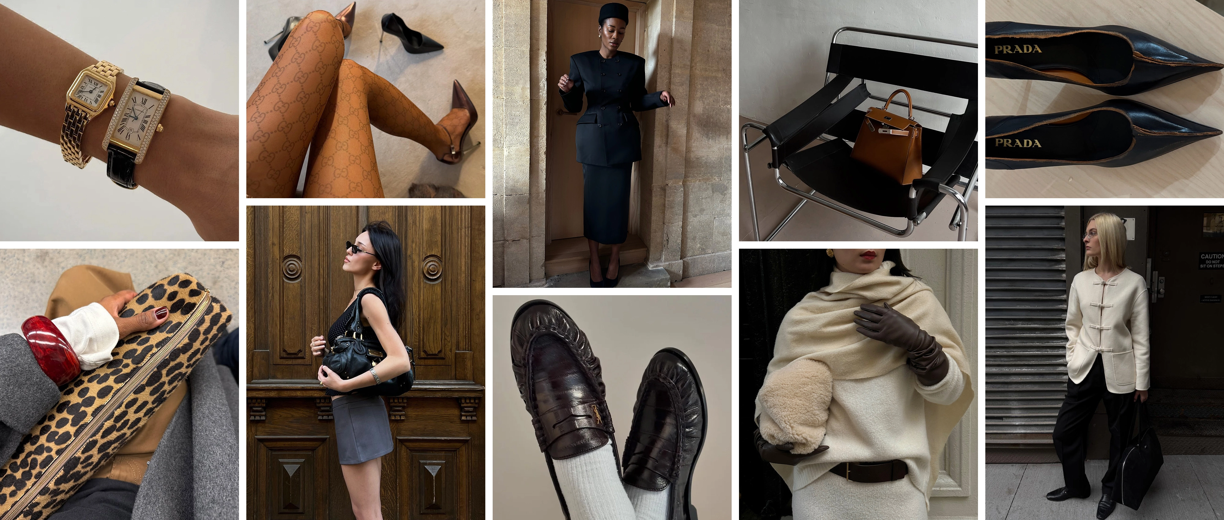 Another example of how small tweaks can make a big difference to our usual staples is the collarless blazer worn here by Marilyn NK. Lately, it feels like we're seeing the end of the oversized power suit and welcoming in an era of neater two-piece sets featuring blazers with a more sculptural silhouette. When considering accessories, as a vintage-obsessive, I've loved witnessing the resurgence of old designer bags. There are a few signature styles included in my lineup, but none quite as iconic as the Birkin. Similarly, when it comes to watches, the Cartier Panthère will never go out of style. Finally, I must mention the much-talked-about Louis Vuitton lipstick, which is the only beauty product on my list, because sexy lipsticks are the ultimate accessory in the women's bathroom.