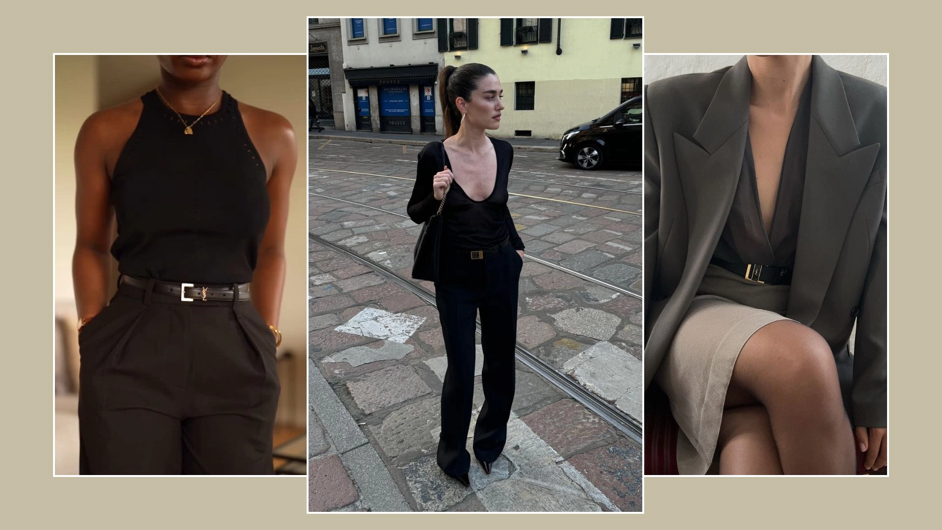 Designer logo belts have been rising in popularity again, and the Saint Laurent Cassandre is the one we're spotting most.