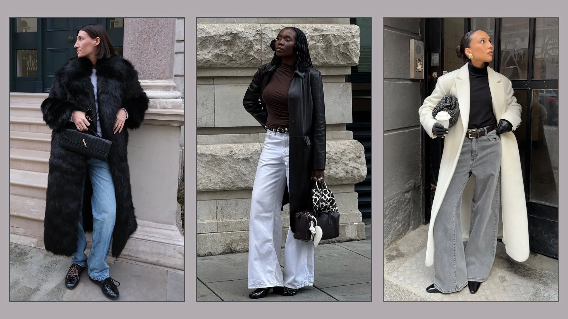 From luxe faux-fur paired with casual wide-leg denim to timeless leather worn with on-trend barrel-leg jeans, I’ve rounded up seven coat-and-jeans outfits to copy in winter 2026.