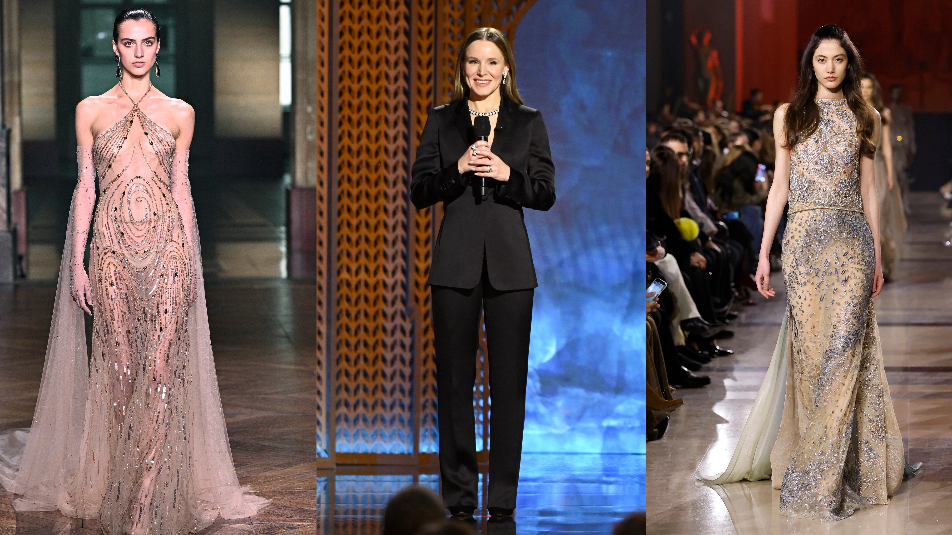 I also thought about women like Marlene Dietrich—that balance of femininity and authority, especially in tailoring. That felt very aligned with Kristen as a host.