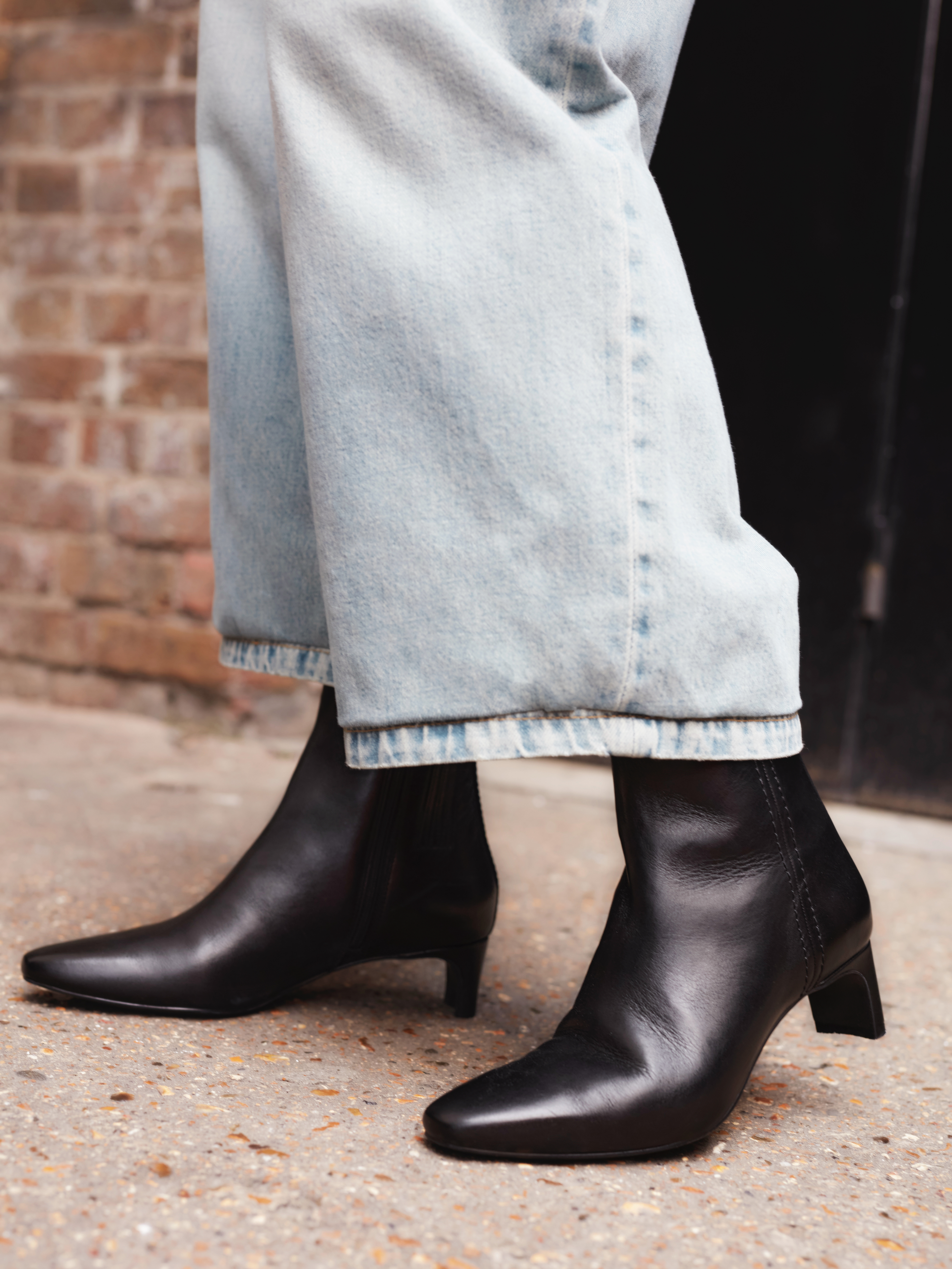 A structured, heeled ankle boot that feels equally perfect for the office and after-hours drinks. The thin heel gives height without sacrificing comfort, whilst the strap detail adds a little something to help them stand out.