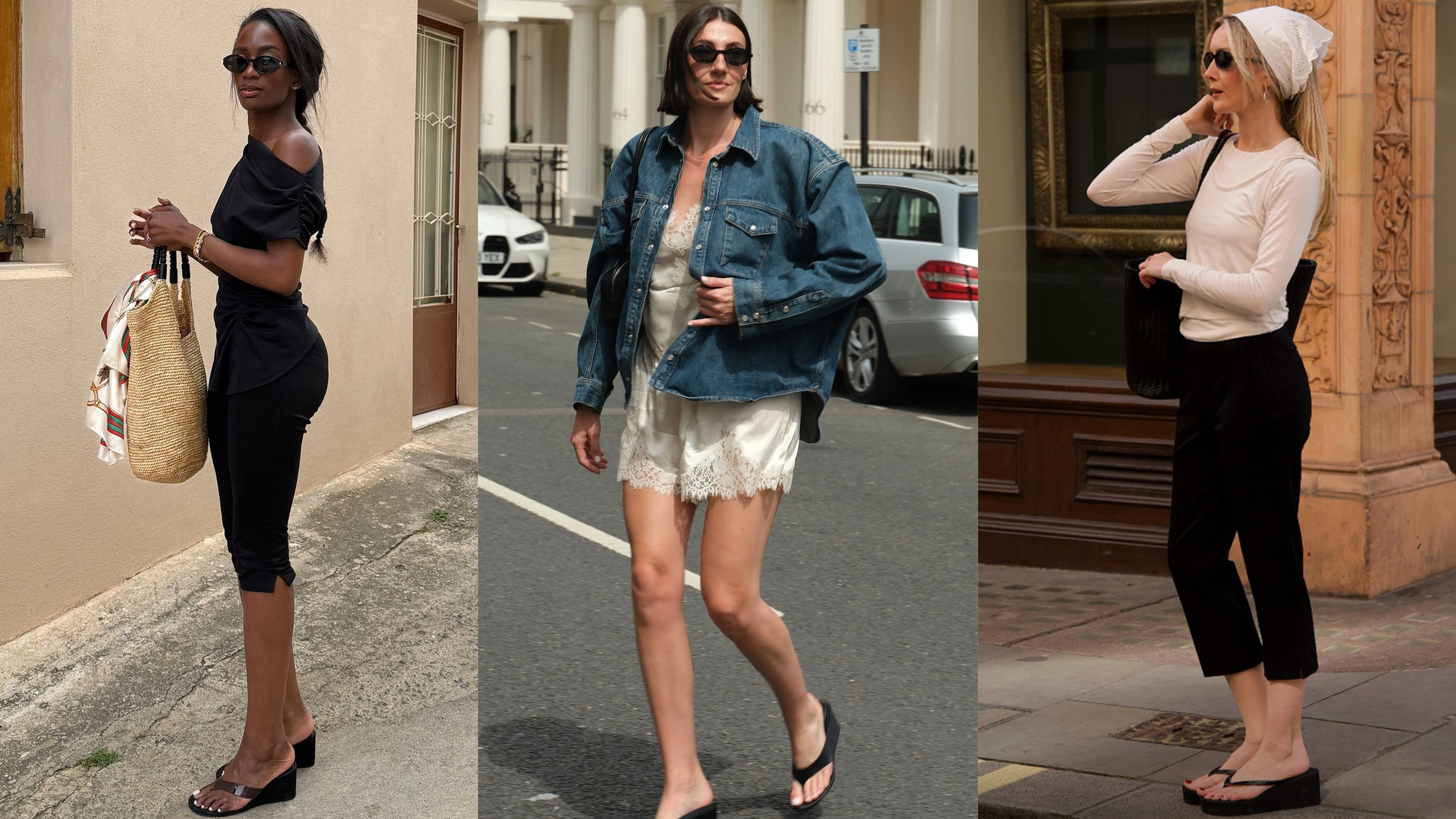 No longer are delicate strappy heels or barely-there flats the only way to tap into sartorial nostalgia, as wedge flip-flops offer an alternative way to toe the line between the past and present, comfort and style, and two timeless sandal styles. It's no wonder, then, that we've already seen this shoe trend take off on social media with the style crowd, a phenomenon which will likely continue well into the coming months. But if you have yet to be convinced that this “controversial” trend is indeed making a comeback, keep scrolling. Ahead, we’re sharing a few wedge flip-flop outfit ideas that not only prove that this trend is so back, but will also give you an idea of how to style them, too. Plus, we’ve curated a selection of the 30 best wedge flip-flop sandals to buy for spring (in case you feel inspired). You may never fully come around to the idea of getting rid of your heeled flip-flops, but hopefully you’ll be able to rethink your feelings about wedge versions.