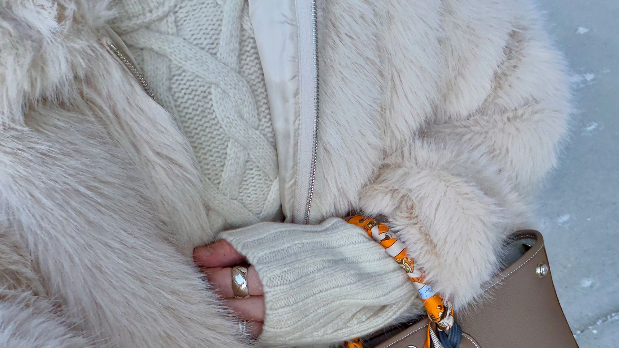 To get to the point, Sofia Richie Grainge's label, SRG Atelier (sold at Revolve), HITS. I've been a fan of the brand since the fall launch—each drop is filled with modern designs that are highly wearable. One of our writers recently covered a range of Sofia Richie-approved trends, and it's this faux-fur coat that really spoke to me, with its color and cut. I tried it and received so many compliments when I wore it. FYI, I like styling it with a coordinating cream sweater and trousers, as shown above and below.