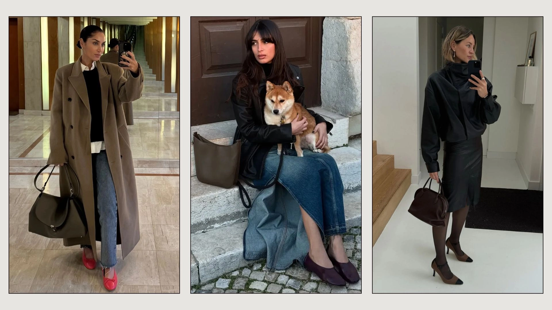 From trench coats to kitten heels, these are the essentials they rely on for the winter-to-spring transitional period.