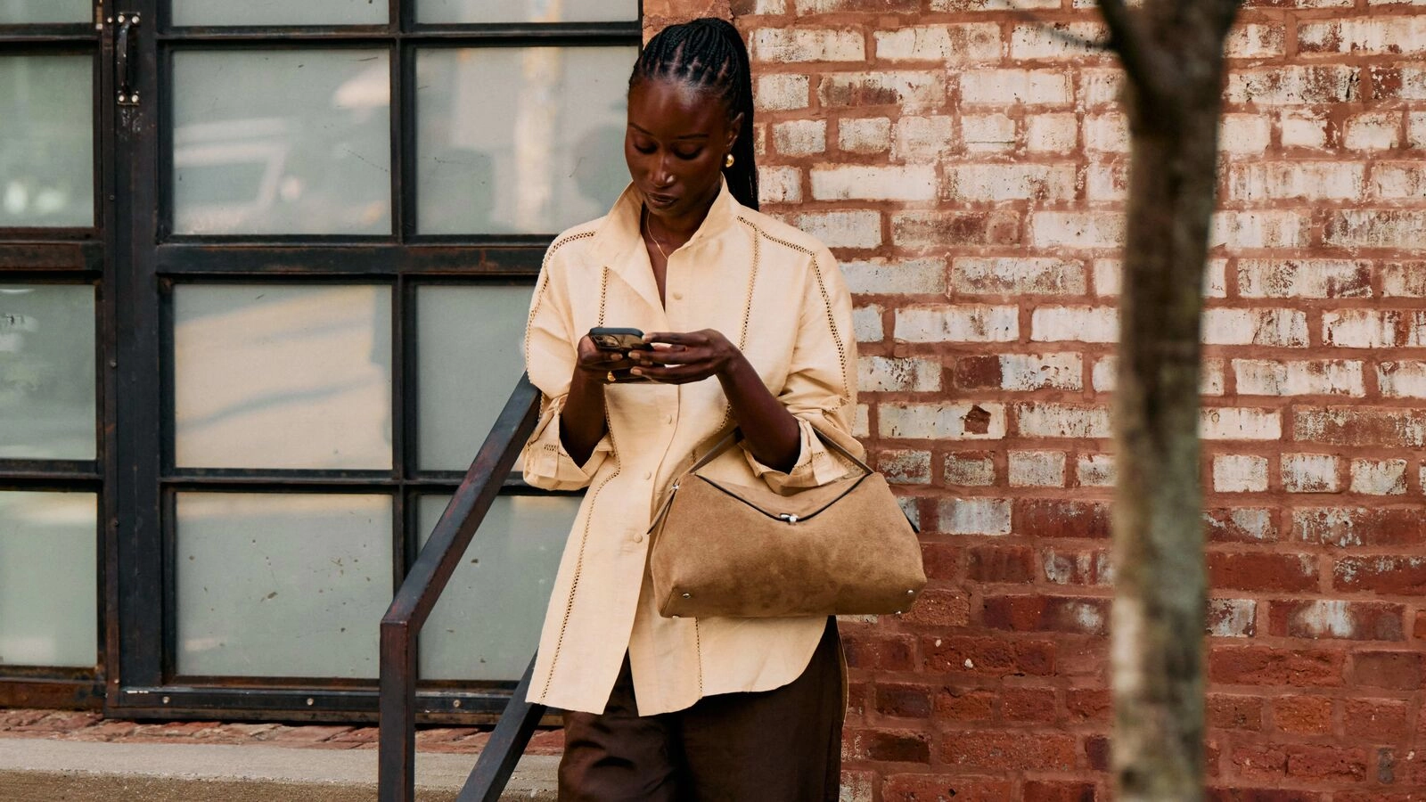 Suede totes and pleated trousers ahead.