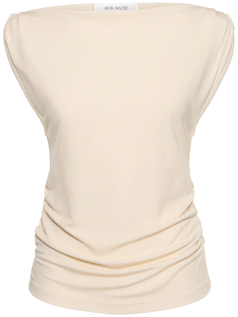 Sheer tops are having a moment, and this flowy off-the-shoulder halter top is the chicest way to rock the trend.