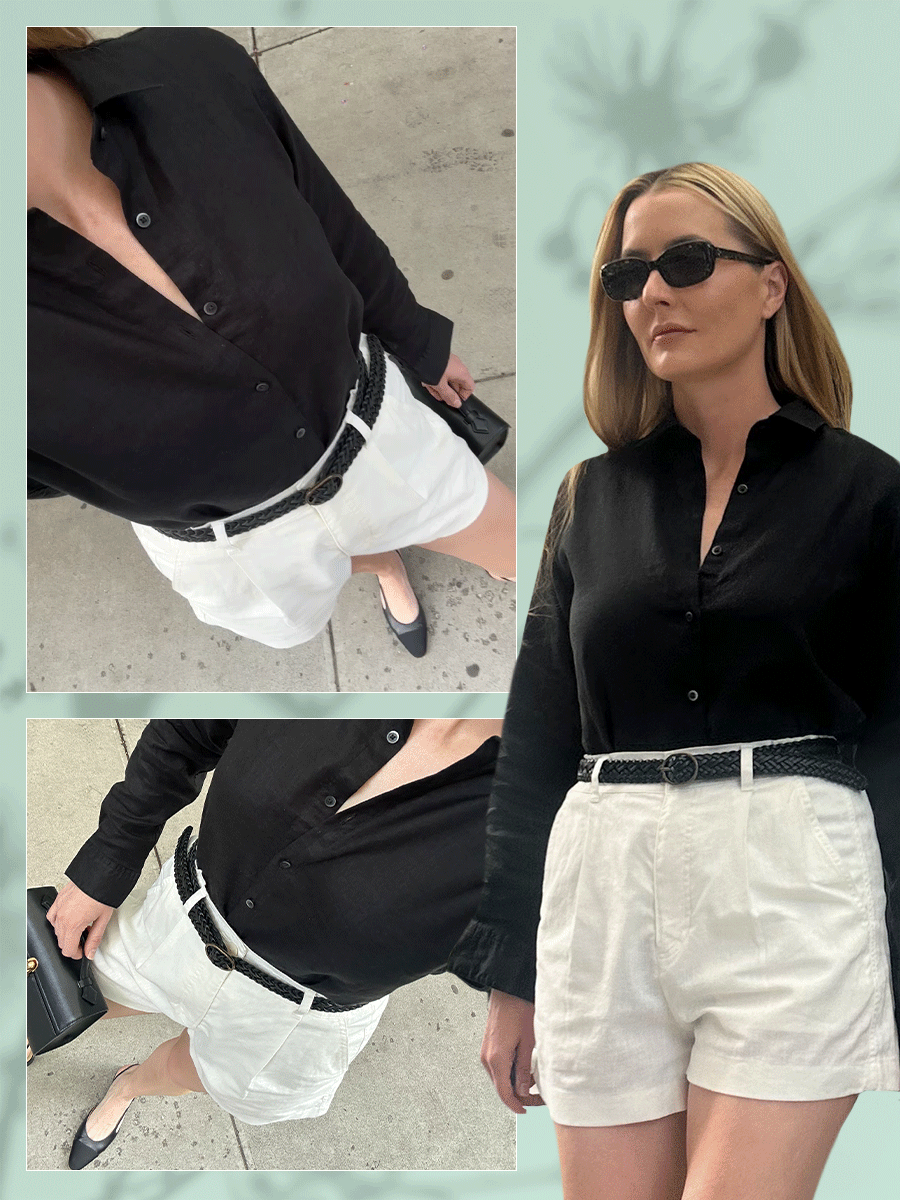 "This is my go-to look to wear on the weekends in NYC for everything from trips to the farmers' market to brunch with friends. The UNIQLO linen pieces can easily be dressed up or down with some sleek accessories. These shorts, in particular, are made from UNIQLO's linen blend, so they have the comfort of cotton fabric combined with that classic linen luster. While I'm thinking about looks for the city, these pieces are also the ultimate vacation items, and I would style them differently on a getaway. The button-down is perfect as a bikini cover-up while the shorts would work well with a one-piece swimsuit and sandals. UNIQLO's linen pieces are lightweight, airy, and made of the highest quality." — Kristen Nichols, Associate Director, Special Projects