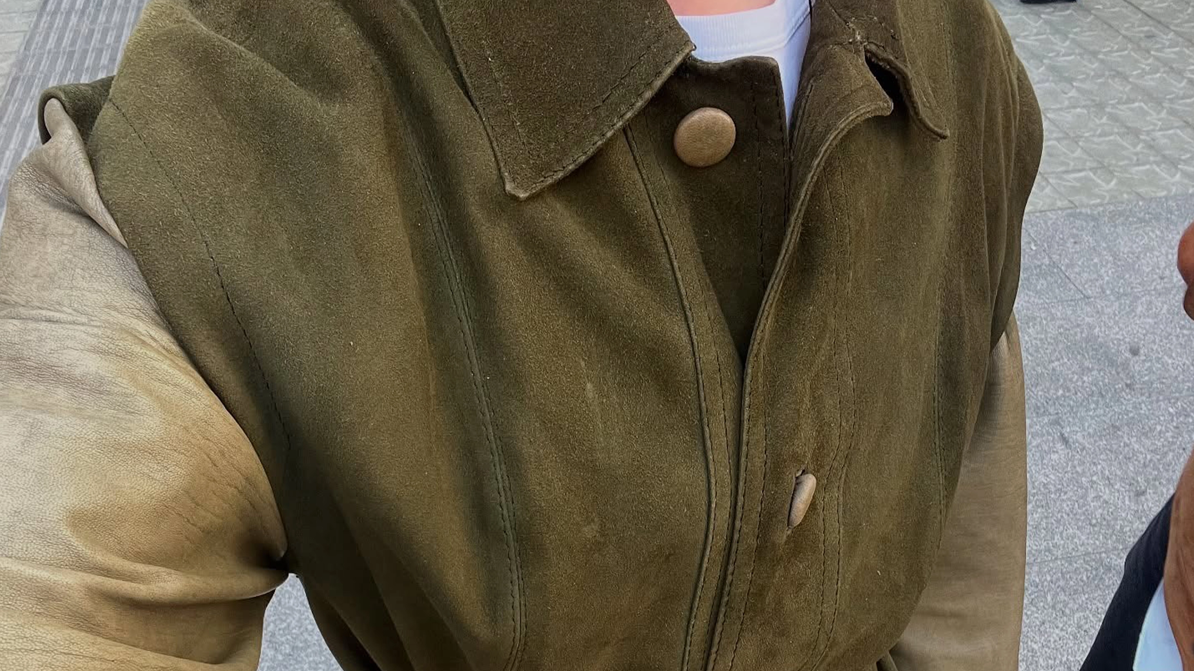 Unlike traditional brown and mocha-colored suede jackets, bags, and shoes, stylish Madrid women are opting for fun, olive shades of the fall staple this season.