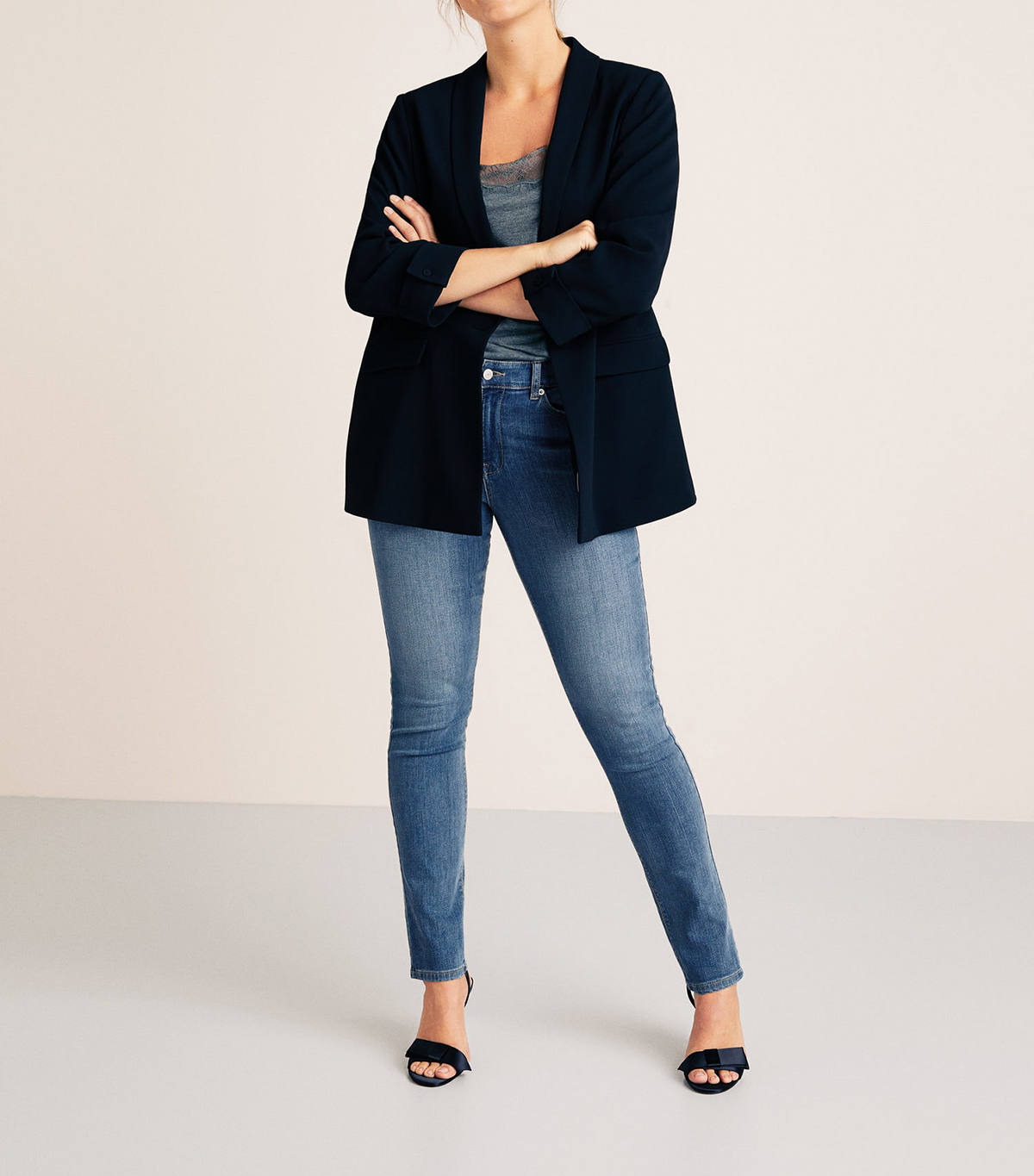 As a general rule, I now stick with tailored jeans in straight-leg cuts that don’t have any rips or frayed hems. Vintage or vintage-inspired denim is definitely a must—as long as there aren’t any major tears or holes.