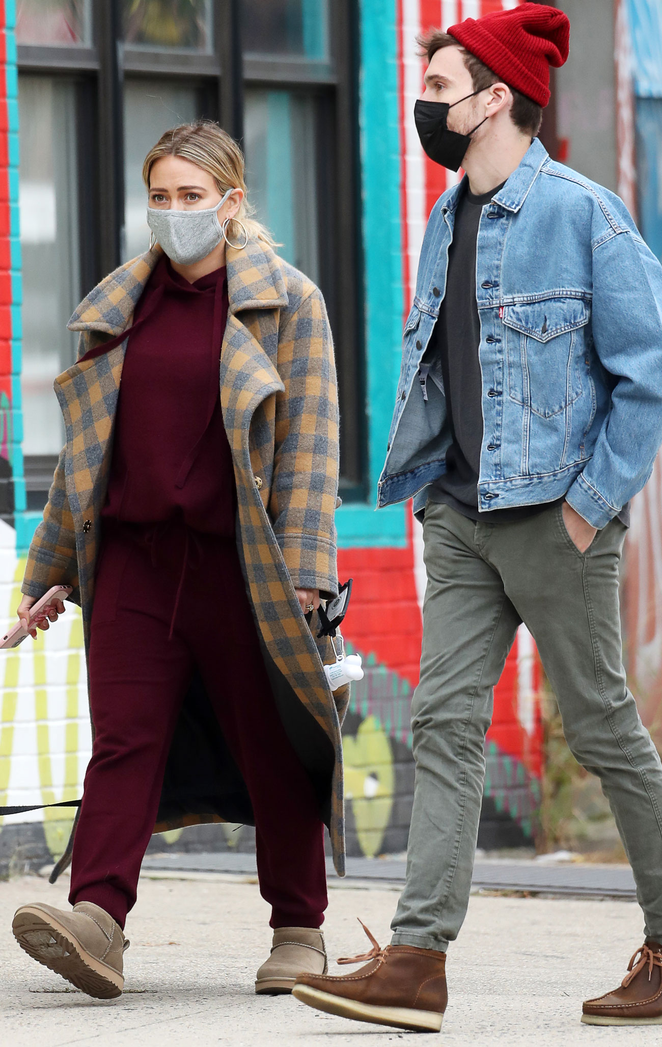 Although the brand has plenty of dedicated fans, I can't help but think that the sales have been #influenced by celebrities like Emily Ratajkowski, Irina Shayk, and Joan Smalls, who have all stepped out wearing the Ultra Mini style. And now you can add Hilary Duff to the list. Photographed in NYC fresh off her Instagram pregnancy announcement, Duff bundled up in a matching cashmere sweatsuit by Splendid along with the Smythe Blanket Coat ($995). Scroll down to see her outfit and shop it for yourself.