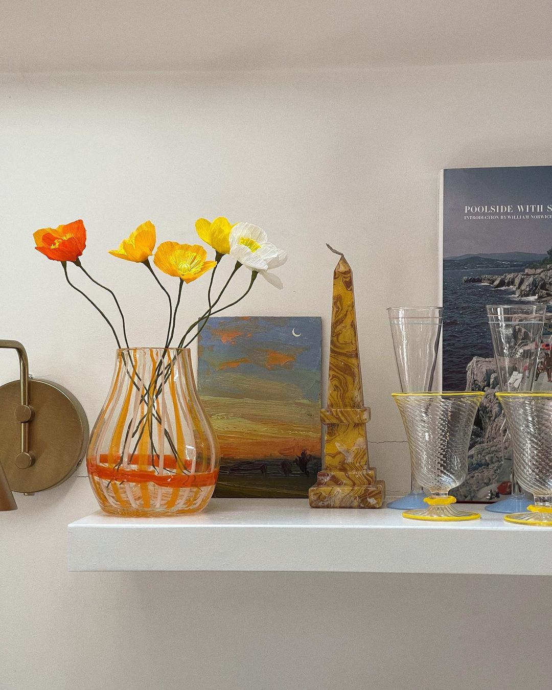 There are five categories, in particular, that we love for trending interior items: prints or wall art, statement vases, unique glassware, cushions and side lamps. When it comes to standout trending items, we love Anissa Kermiche’s bum vases, Astrid Wilson's colourful floral prints and the pleated, curved table lamp from H&M. Keep scrolling for the 25 items that we think are a welcome addition to any home.