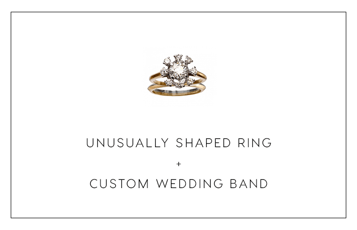 In the case of an unusually shaped engagement ring, Sheffield confirms that a custom band is the way to go. She says, "I often make custom rings for clients who want to fit a ring with an interesting shape or proportion, or just when they want something more elaborate than we offer in the line."