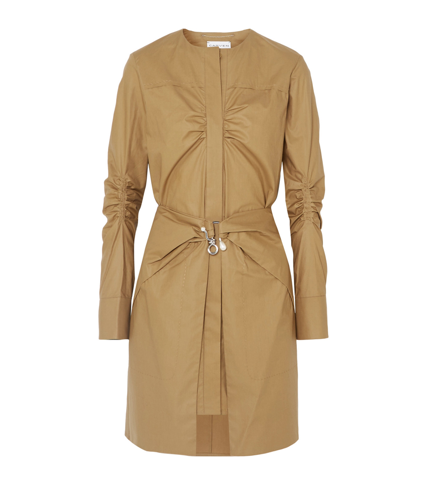 When it comes to office-appropriate pieces, it doesn't get much more on point than a turtleneck, but if you want to spice things up a little, try layering a dress over it. We love the idea of a loose-fitting khaki dress so you can shrug up the sleeves and show off the turtleneck underneath. Then add a pair of fun earrings for a pop of extra shine. This will also extend the shelf life of your favorite lightweight dresses since you'll be able to stay warm with layers, too.