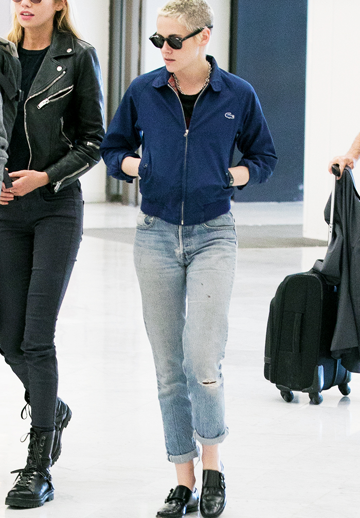 Style Notes: This is another Kristen outfit from 2015 that is worth revisiting. She's a fan of crop tops, and her collection also extends to abs-flashing boxy shirts. Her trainer obsession has been heavily documented, but she also loves chunky black loafers with rubber soles, which might remind you of your school shoes. However, these are more Parisian schoolboy than '00s Kickers.