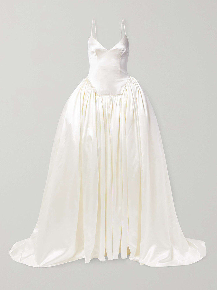 Getting into specifics, Lily Kaizer of Happy Isles pinpoints the top-requested styles and designers. “Brides are seeking feminine, gauzy texture and accents like bows and stringy embellishment," Kaizer shares. "To service this craving, we have been sourcing from designers like Chanel, Oscar de la Renta, and Blumarine. For a more streamlined and always sought-after approach, we're seeing an uptick in requests for silky Ralph Lauren, Elie Saab, and Valentino from the '00s through the '10s.”