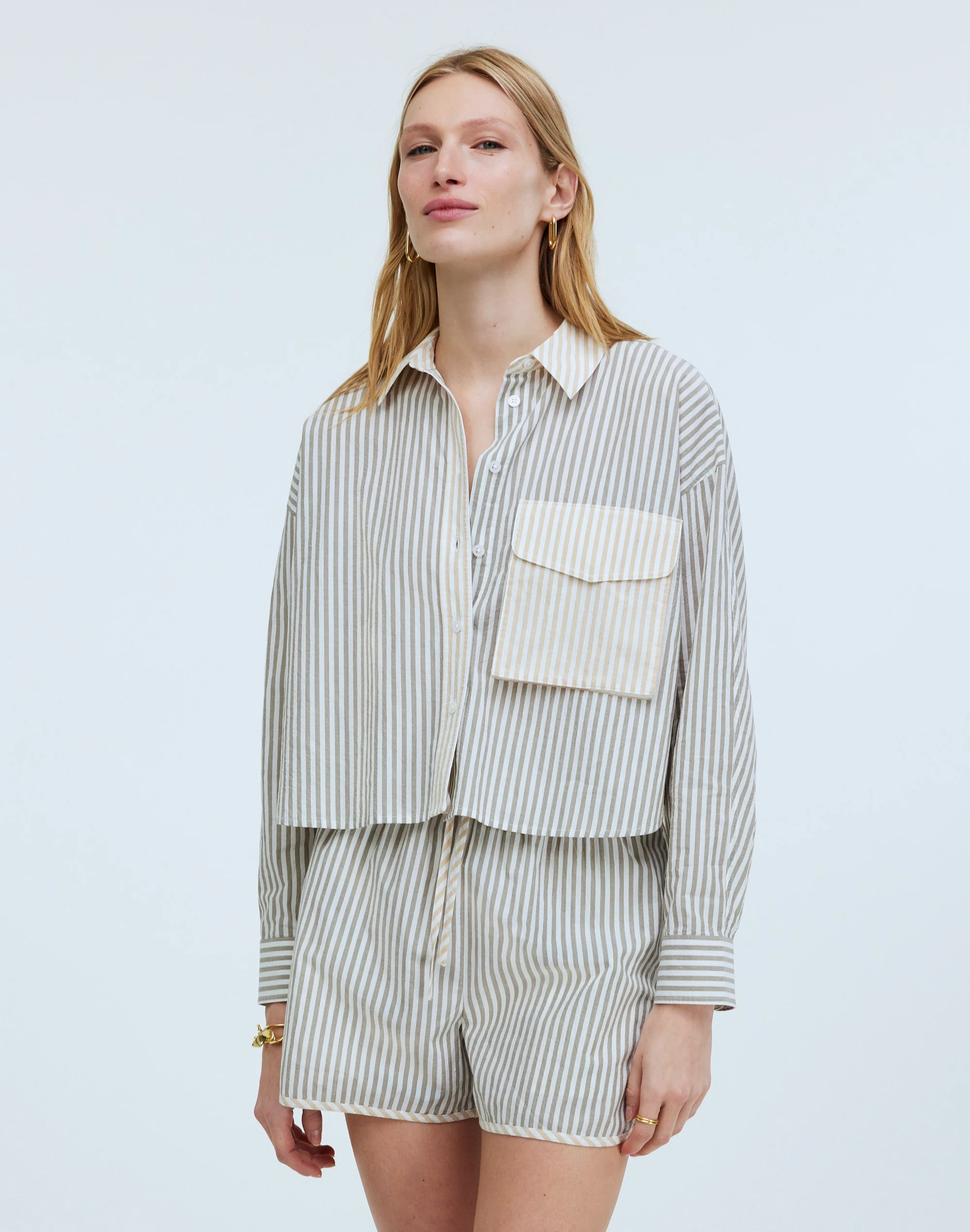 Flap-Pocket Crop Button-Up Shirt in Poplin