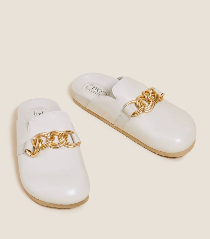 Shackets are the ultimate spring layer, and this longline cream one is really versatile. I love it right now paired with these faux-leather trousers that I keep seeing on fashion people everywhere. And can we talk about these slip-on mules? Bravo, M&S.