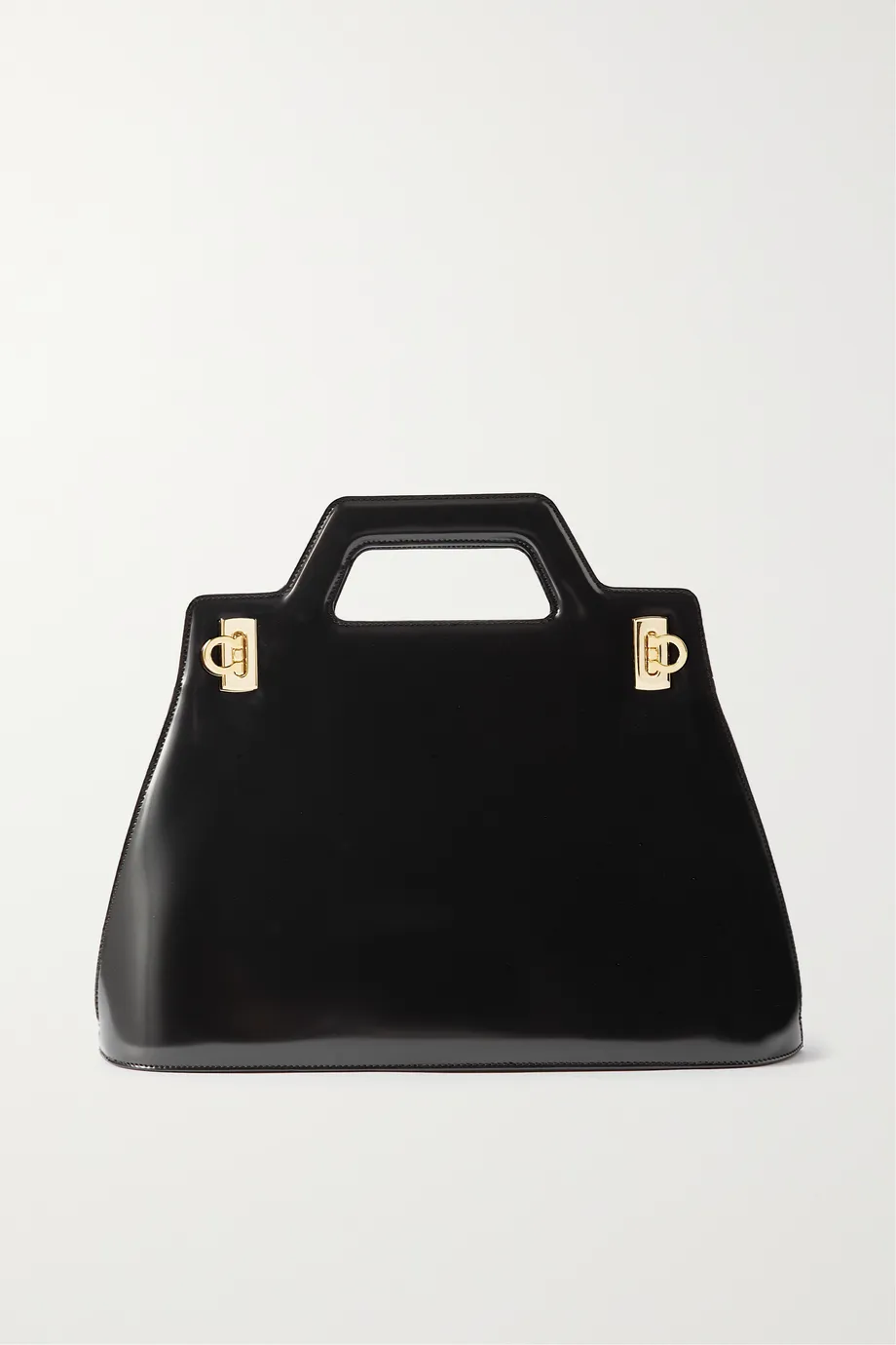 Ferragamo struck the ultimate balance of proportions with this look, pairing a snug bodysuit with wide-leg, tailored trousers. Sleek accessories, including leather mules, a glossy bag, and chunky earrings pull it together.
