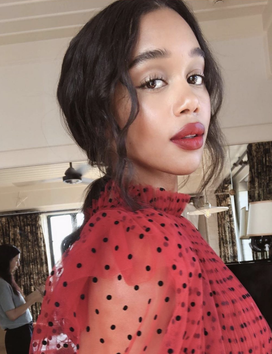 I'm head over heels for Laura Harrier's party ponytail: low, tousled, and with a few tendrils left loose at the front.