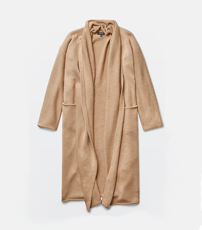 Over the weekend, Huntington-Whiteley stepped out in a streamlined, two-tone ensemble that effortlessly tackled the transitional weather. The star of the ensemble was a delicate knit wool belted sweater worn oversize like a classic camel coat. The lightness of her outer layer contrasted against her fitted black t-shirt that showed off her growing baby bump, black skinny jeans, and black ankle boots. The camel sweater worn over the fitted black ensemble had a slimming effect and the ankle boots that began before her jeans ended elongated the model's already long legs. Baby bump or not, we can all get behind this flattering look that perfectly takes on transitional weather.