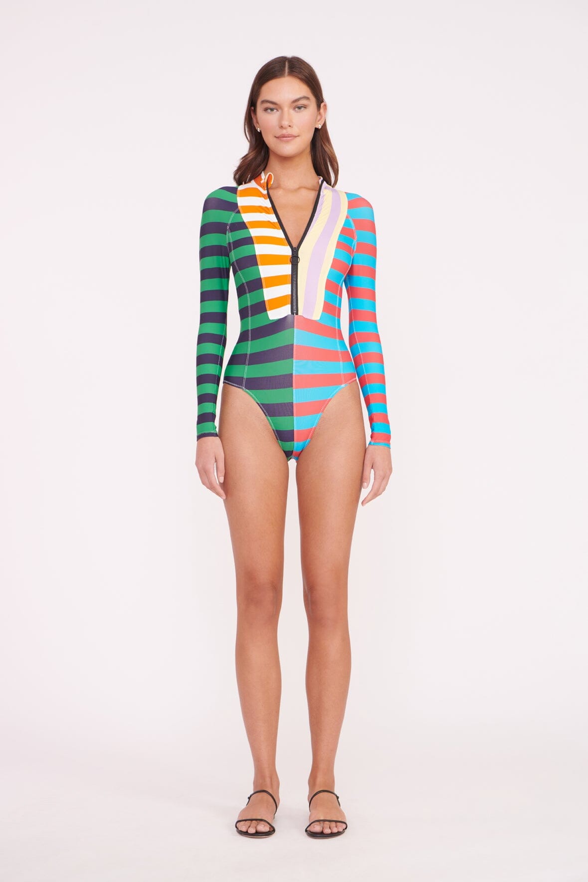 You already know and love Staud's iconic handbags, but allow me to introduce you to your new obsession: Staud swimsuits. The L.A.-based brand has officially launched its first-ever swimsuit collection, and it's exceedingly cute. The new line has it all—bikinis, one-pieces, rash guards, swim dresses, and swim skirts. (Not to mention all the fantastic cover-ups, sandals, beach totes, and more.)
