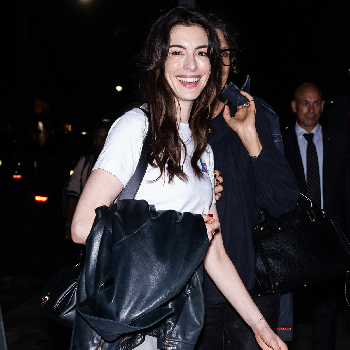 Anne Hathaway Wore Skinny Leather Pants With This Hyper-Elegant Shoe Trend